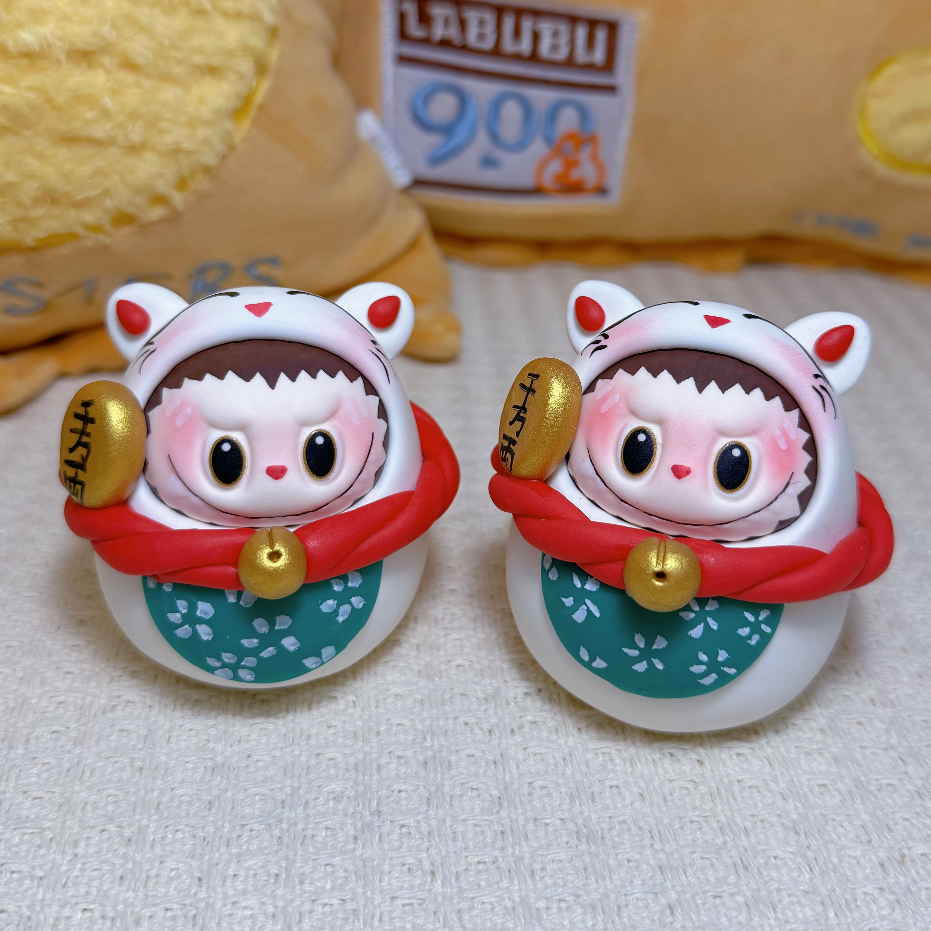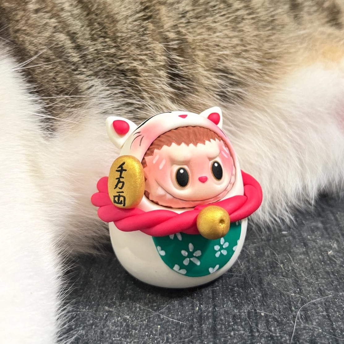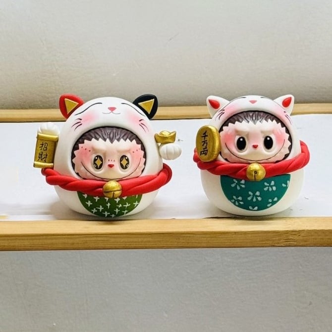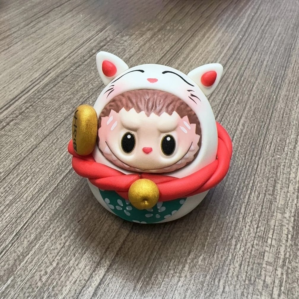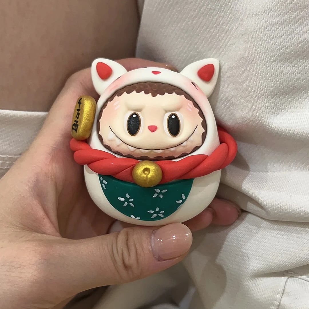 ※予約販売※Labubu 招き猫♡ ぽっちゃり かわいい!Labubu 招き猫 粘土 フィギュア かわいい 開運 幸運 まんまる 千万両 縁起物 新年 プレゼント オフィス 置物