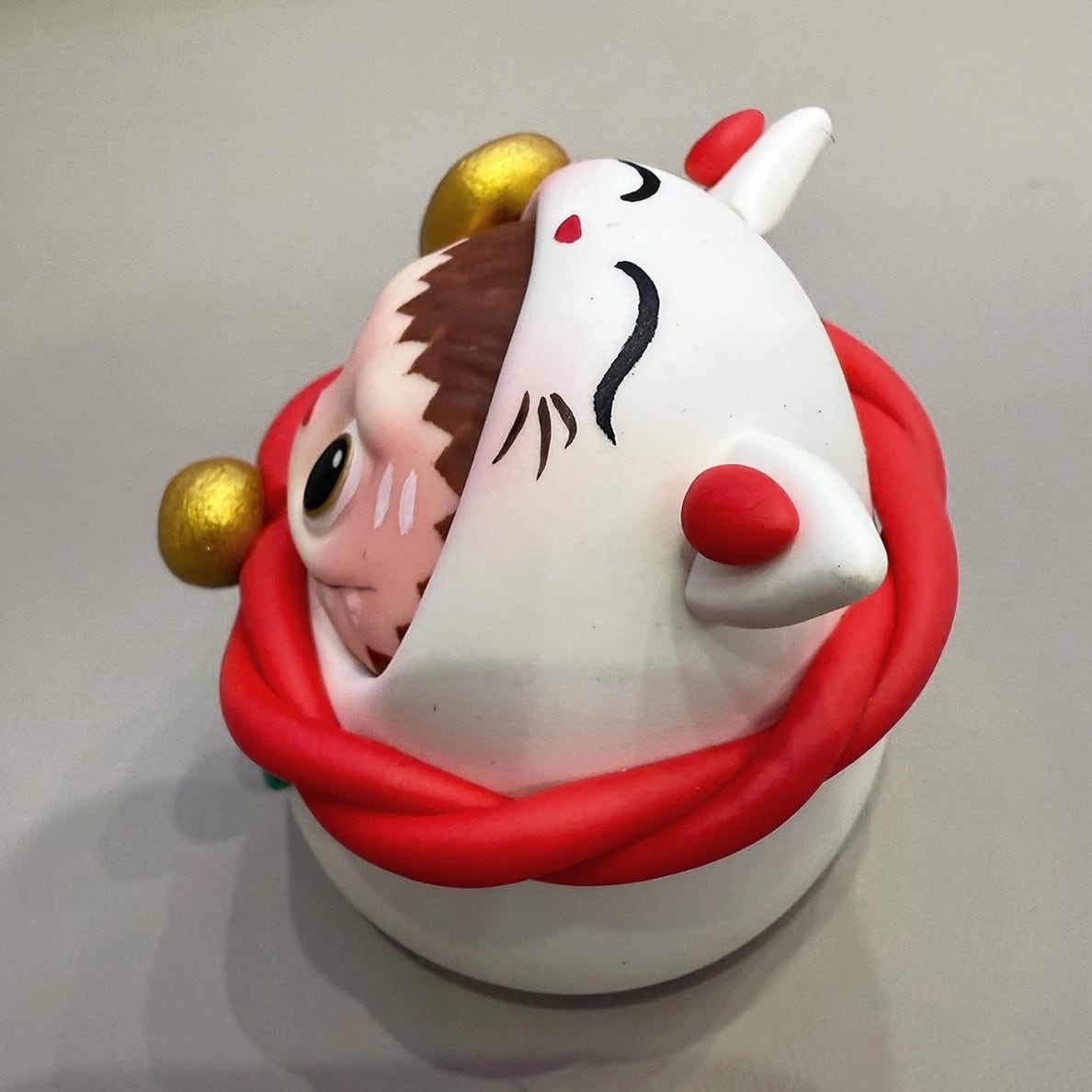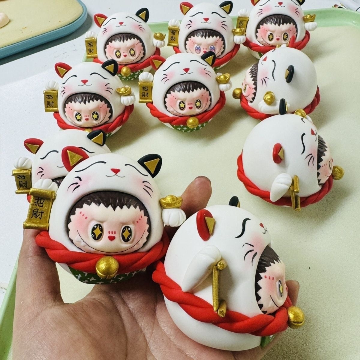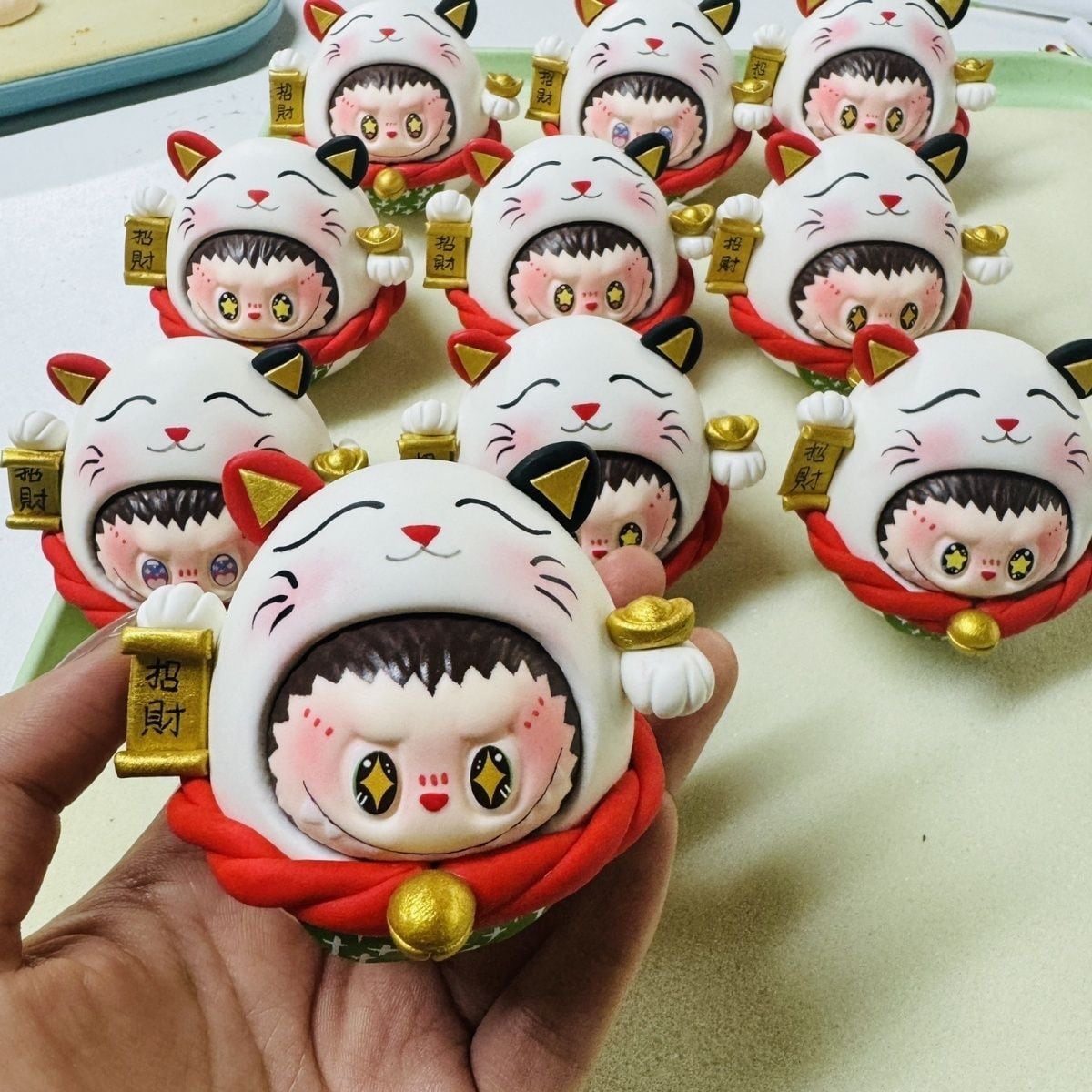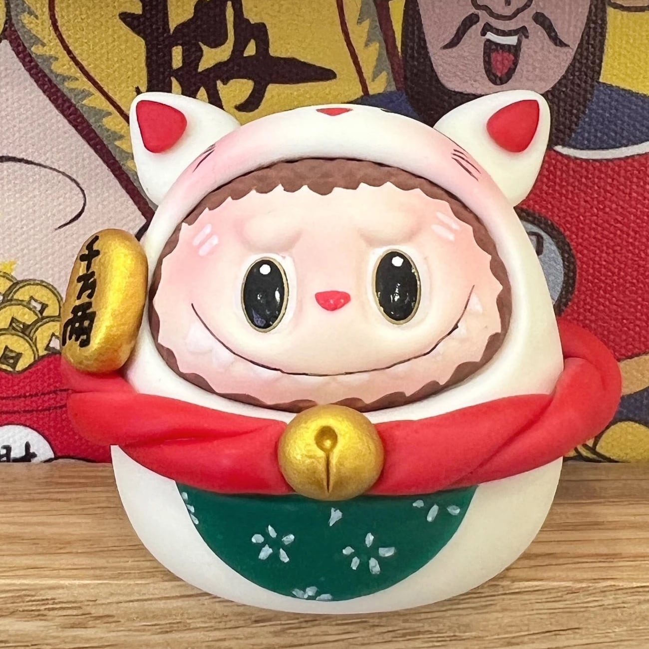 ※予約販売※Labubu 招き猫♡ ぽっちゃり かわいい!Labubu 招き猫 粘土 フィギュア かわいい 開運 幸運 まんまる 千万両 縁起物 新年 プレゼント オフィス 置物