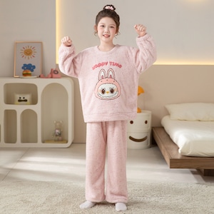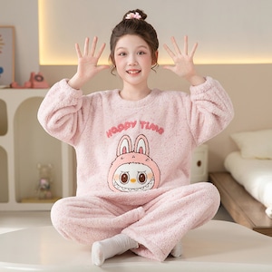 ギフト向け♡ Labubu シーバスフランネル パジャマ 大人 女の子 厚手 冬 高品質 ピンク かわいい 温かくて着心地良い 誕生日プレゼント ルームウェア