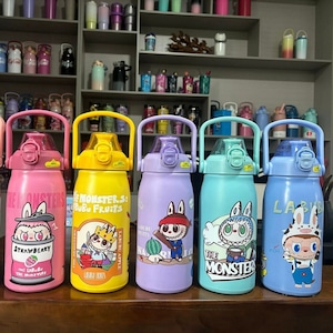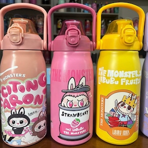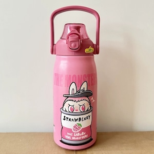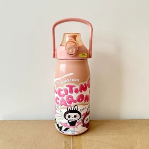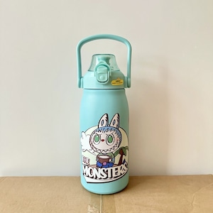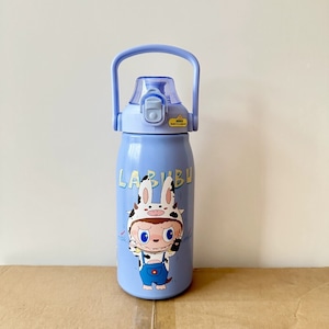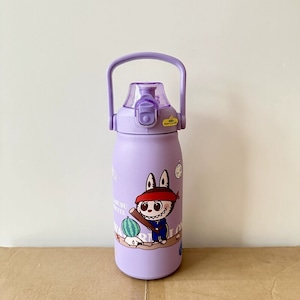 大容量 スポーツ水筒 Labubu プッシュ式 ストロー付き ステンレス 保温保冷 プッシュオープン ストロー付き 取っ手付き かわいい キャラクター マイボトル