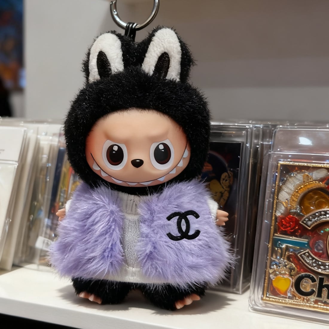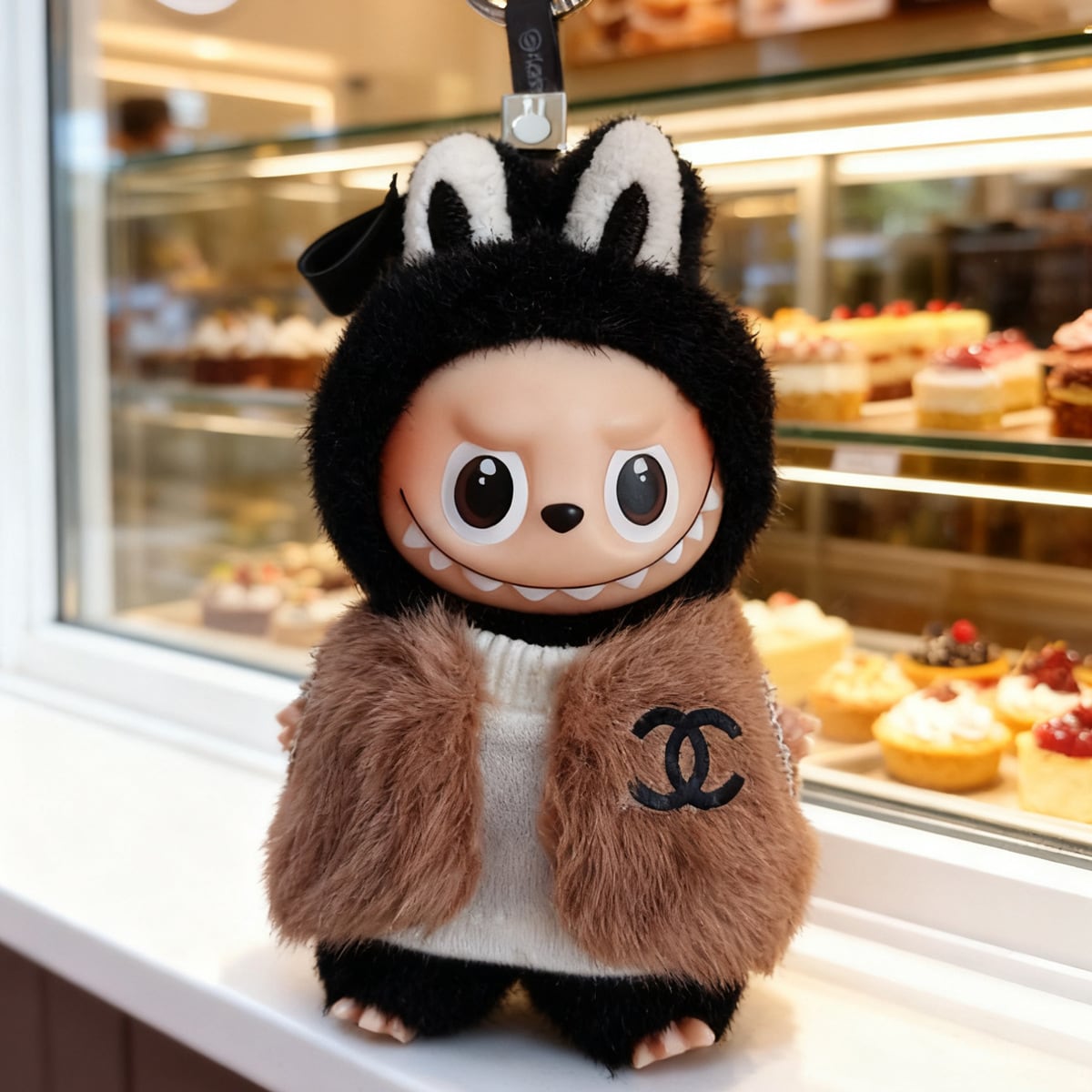 冬にぴったり!おしゃれで可愛い お嬢様風♡ labubu ラブブ 4.0 10cm用 高級ファーコーデ 2点セット 可愛い&エレガント お嬢様スタイル