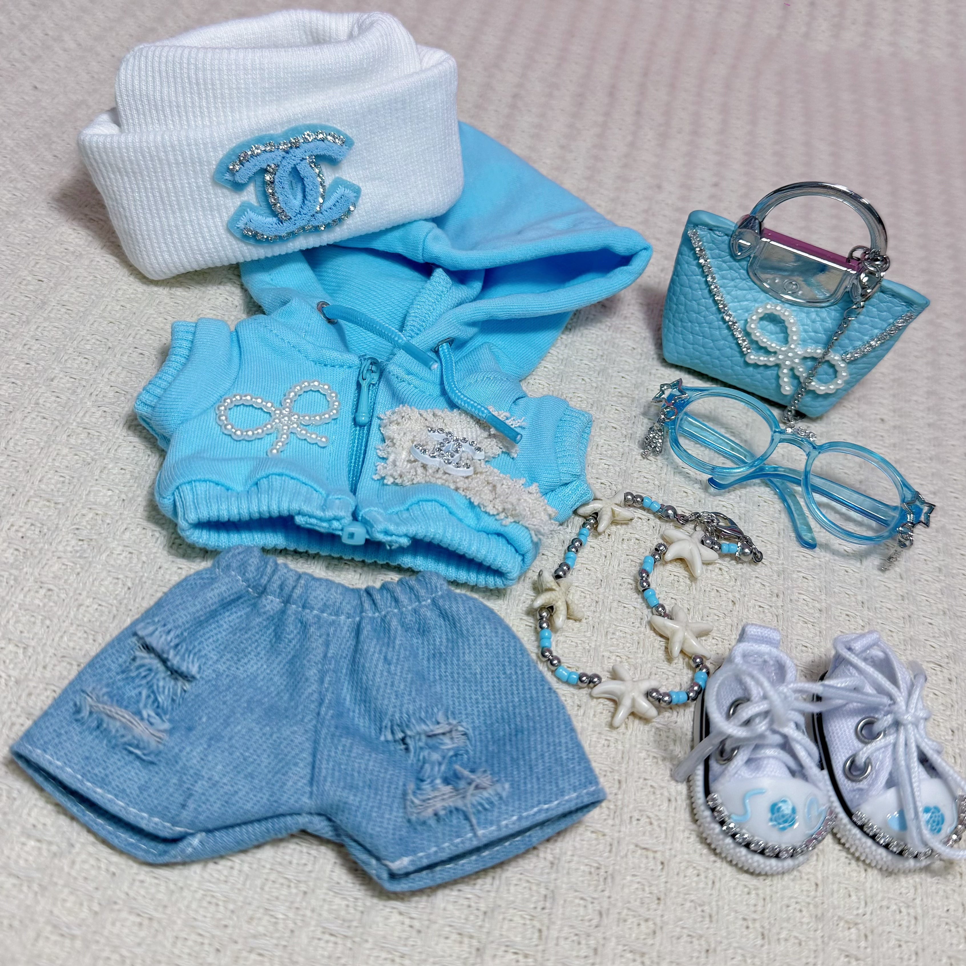 【新色】さわやかでクールな ラブブ ブルーコーデセット!ブルー系 上品♡ labubu ラブブ 6点コーデ - 15cm/17cm兼用 クールでおしゃれ フルセット