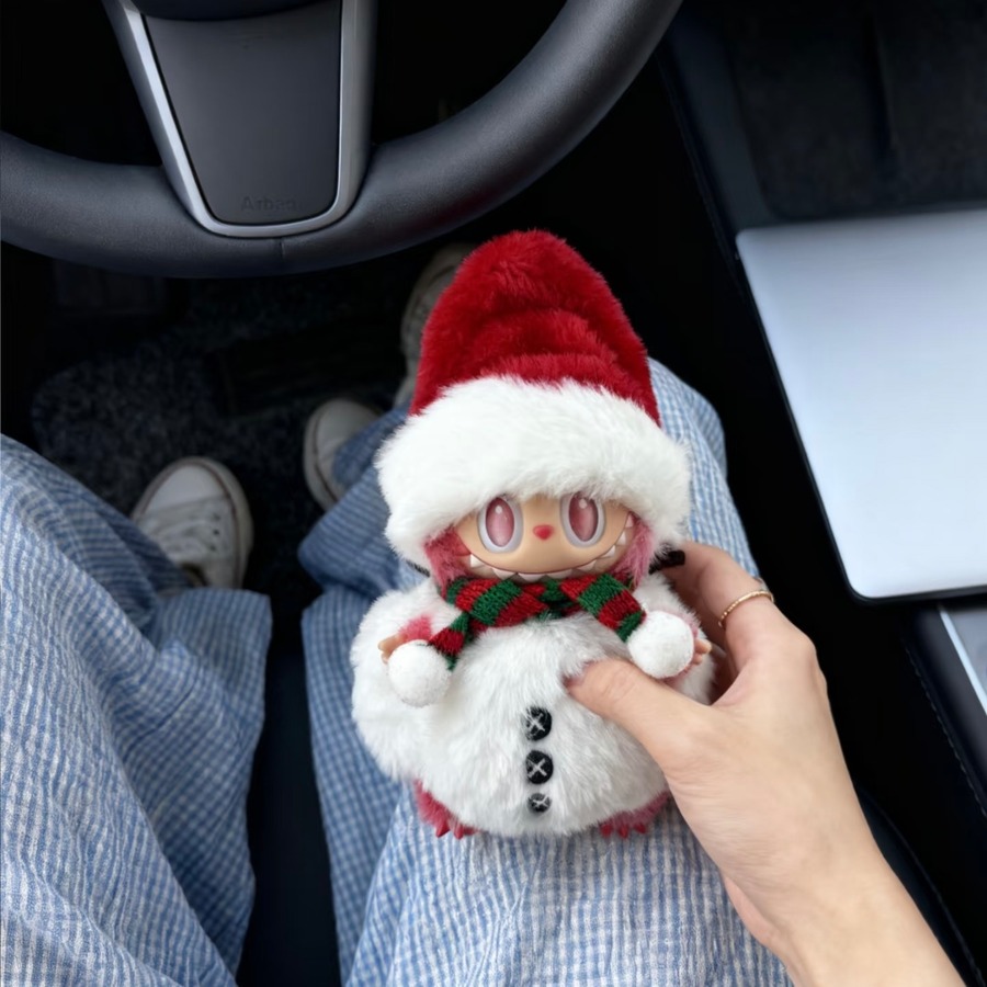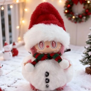 まるまる雪だるま!ふわふわもこもこ極上タッチ♡ labubu もこもこ毛素材のラブブ クリスマスセット 15cm/17cm用 ほっこり可愛い限定コーデ