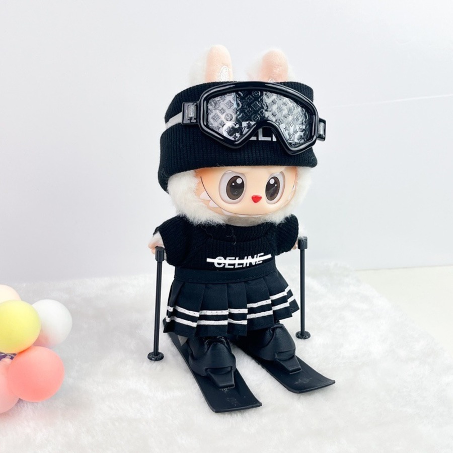 モノトーンで可愛い冬の定番スタイル!Labubu スキーウェア 完全コーディネート|クールでスタイリッシュな6点セット 15cm/17cm