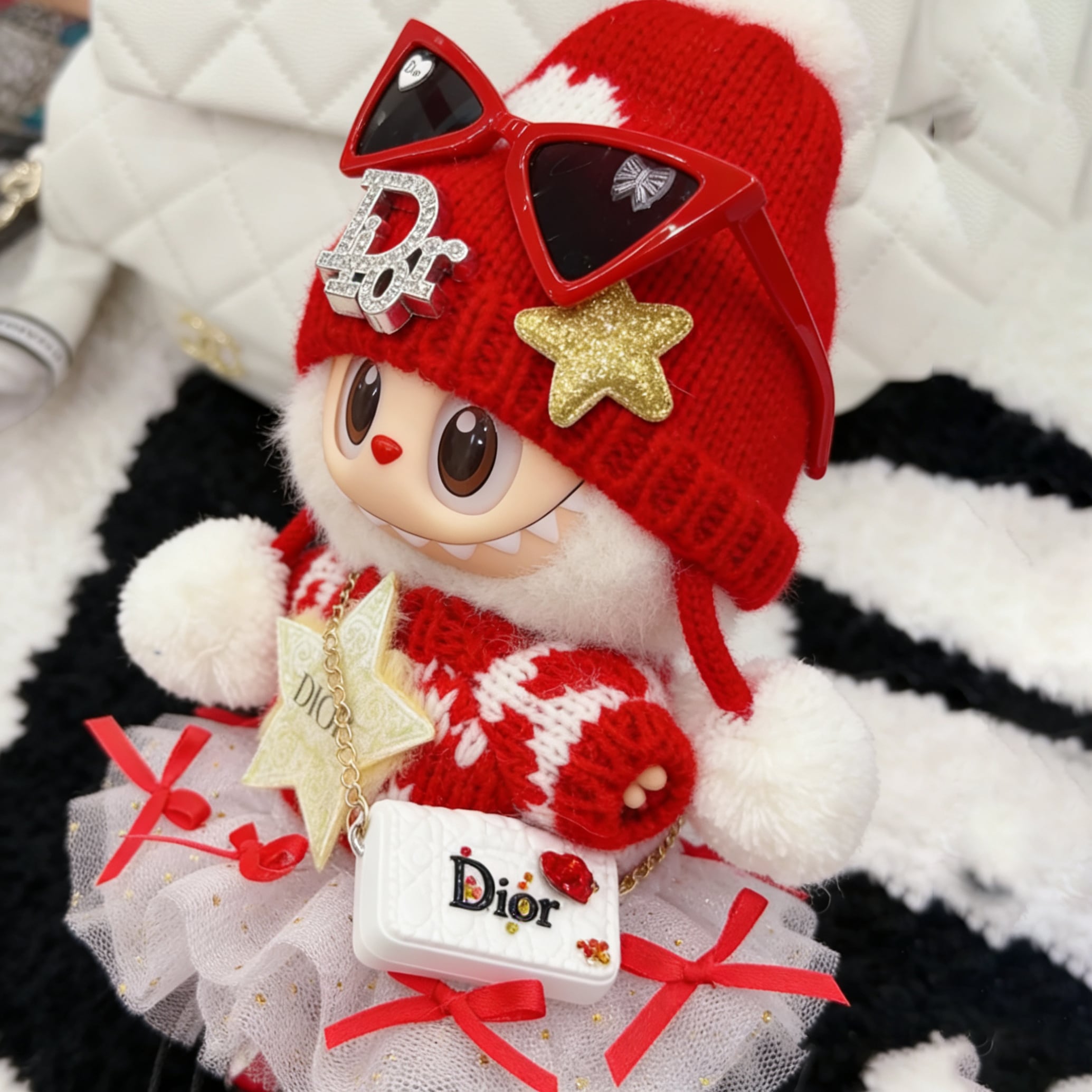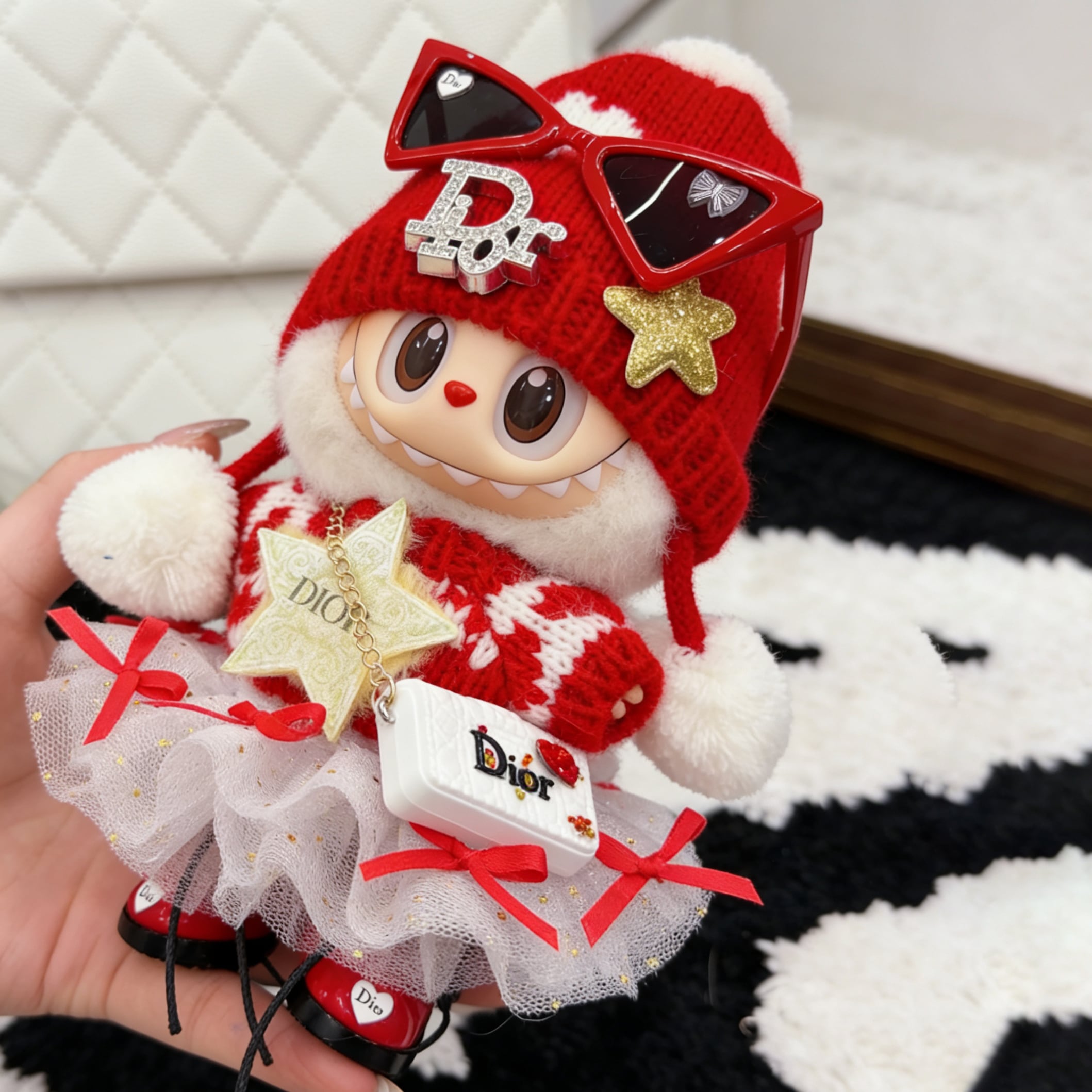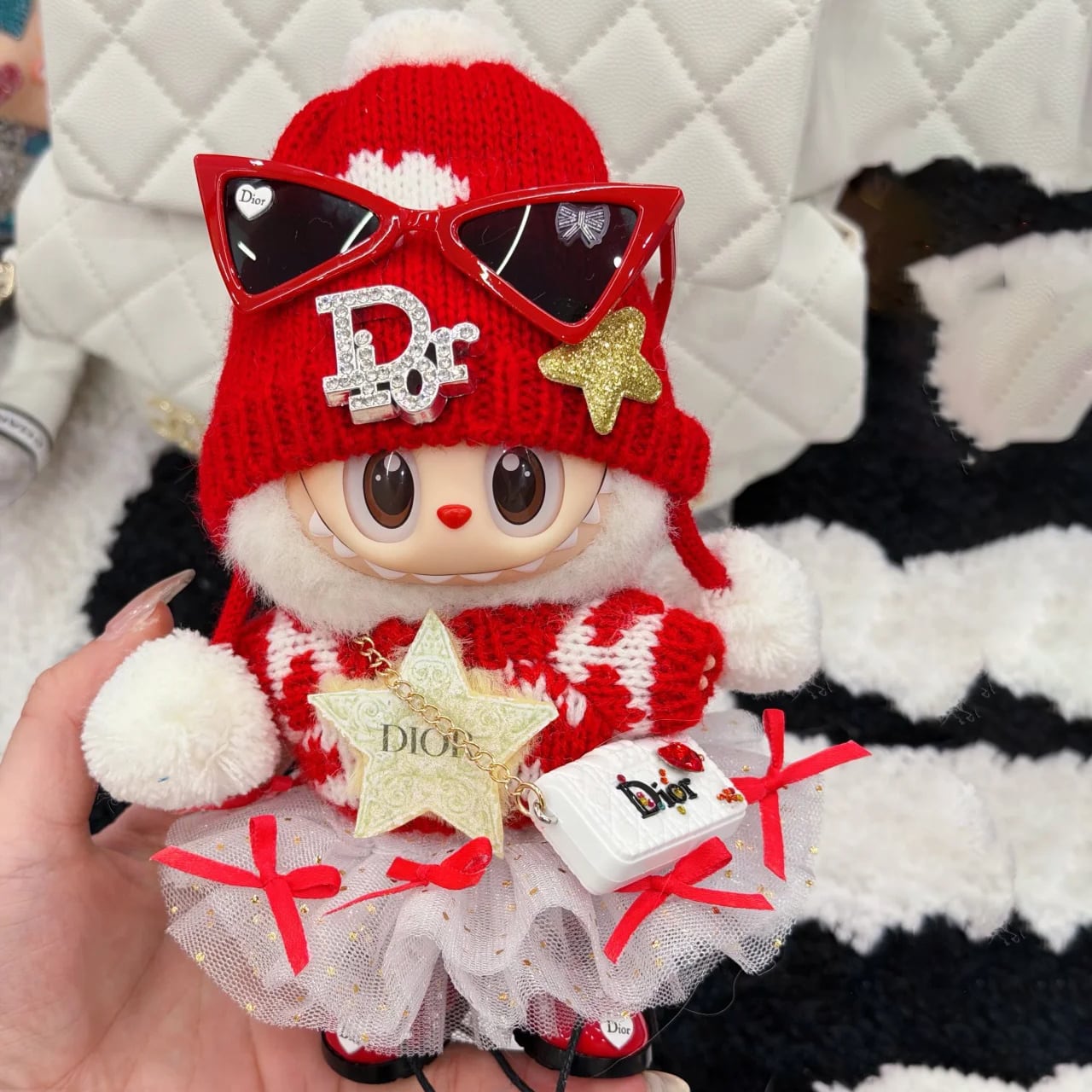 【商品名】プレミアムクオリティ!上品な赤白デザイン♡ ラブブ 15cm/17cm 高級感 モードでキュート ラブブ 新年コーデ