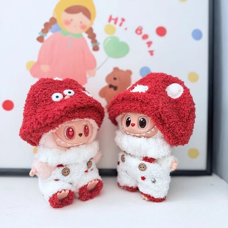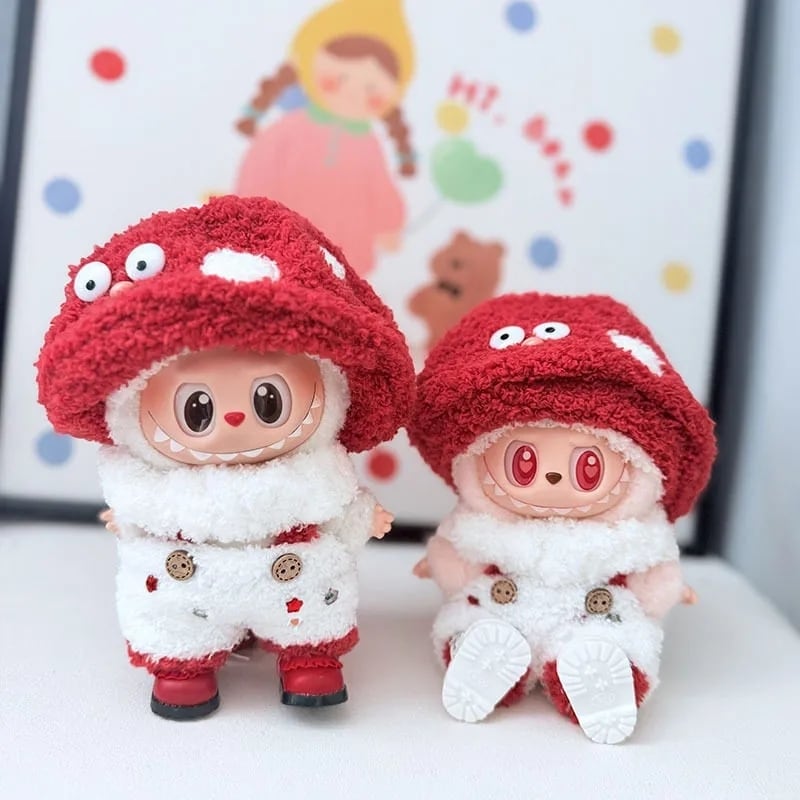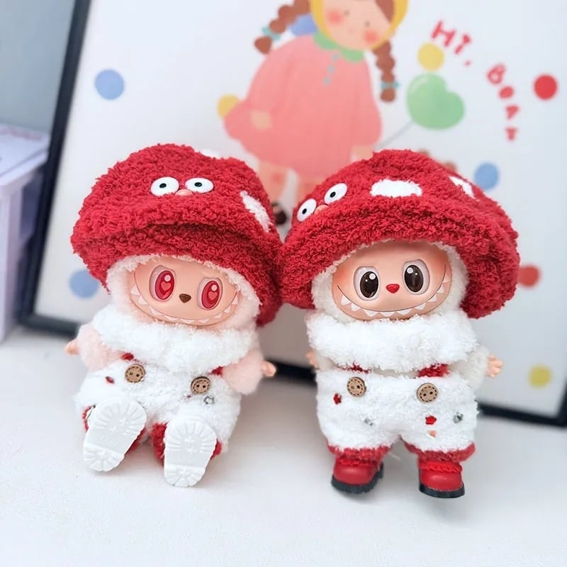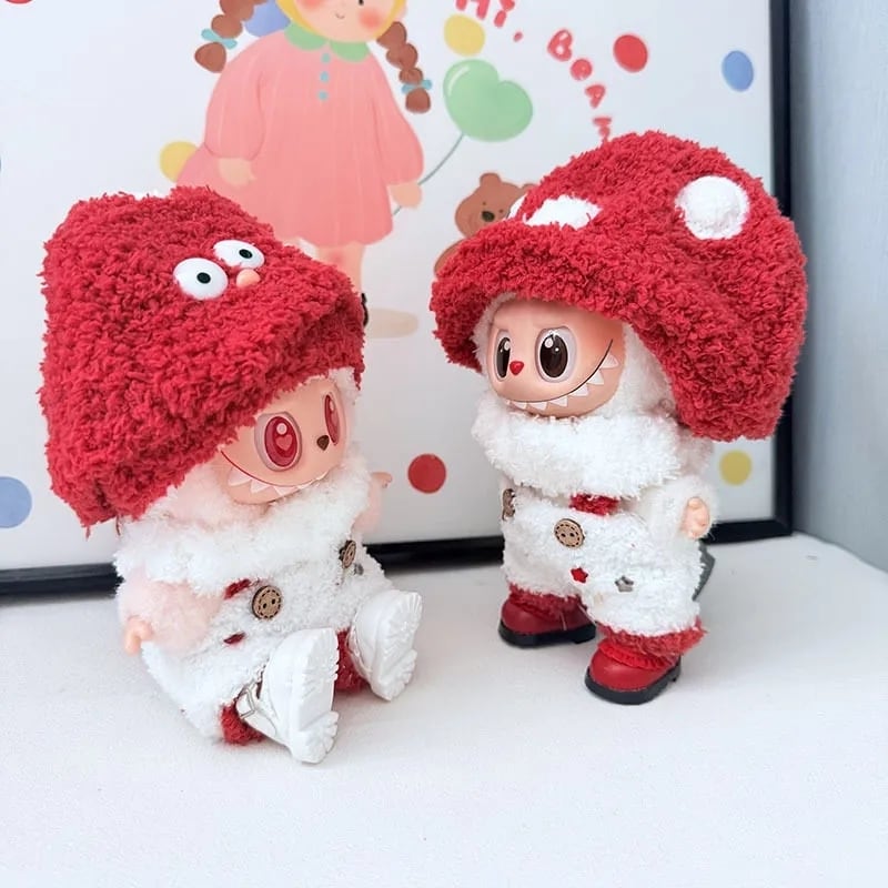 年末の「ありがとう」を込めた特別プライス♡ labubu ラブブ キノコセット お正月カラー 赤白 超可愛い 15cm 17cm シューズ付き 完成品 高品質 フルセット