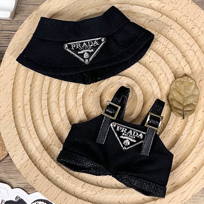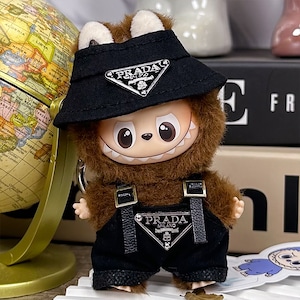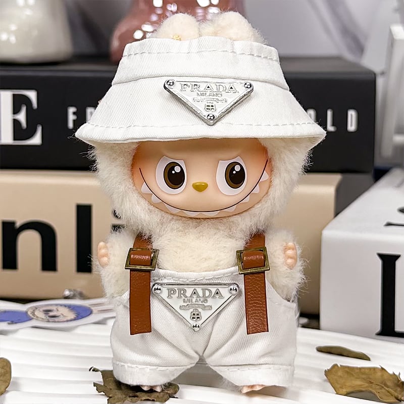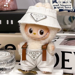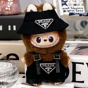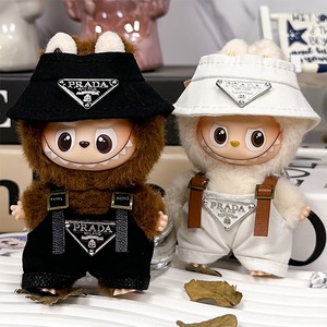 シンプルで高級感 超可愛い!10cm labubu ラブブ 4.0 バケットハットスタイル 2点セット 白黒 トレンド ラブブ 着せ替え 大人気