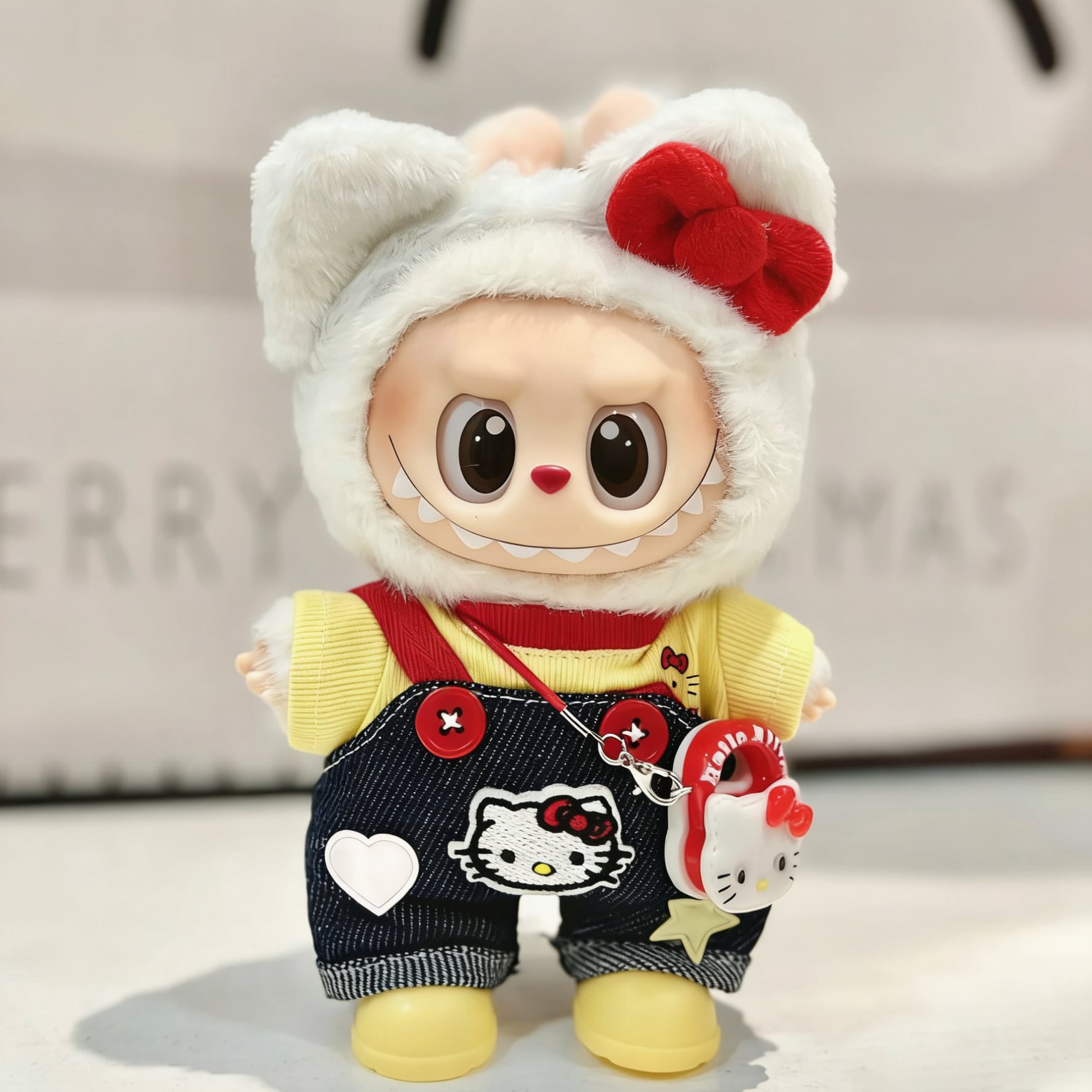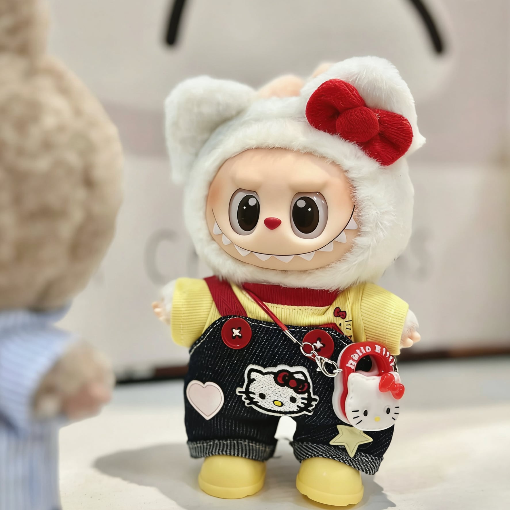 萌え度MAX!もこもこ耳バンド♡ labubu ラブブ 猫耳モチーフ 可愛いフルコーデセット 猫のバッグ付き 15cm17cm 1/2/3世代 着せ替え