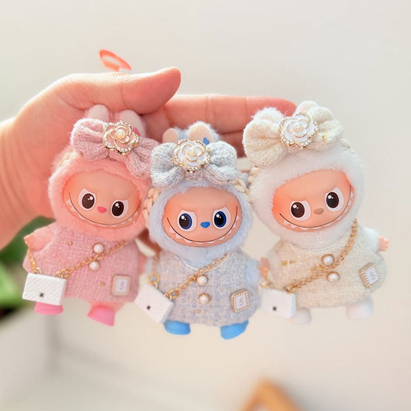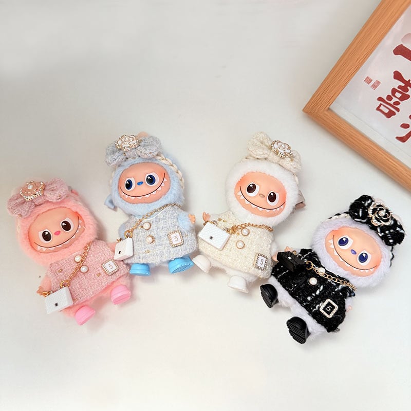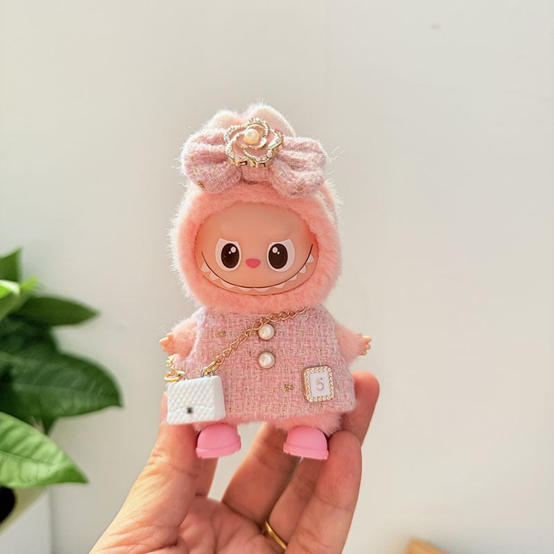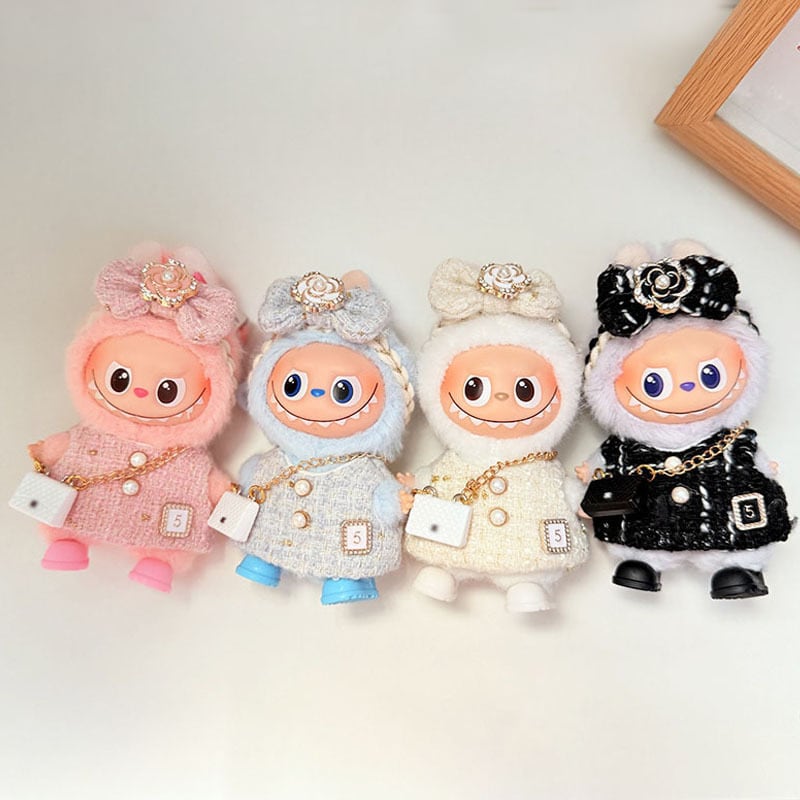 これだけで完全コーデ!上品 Labubu 4.0 10cm用 ツバキのワンピース&バッグセット ショルダーバッグ付き 可愛い