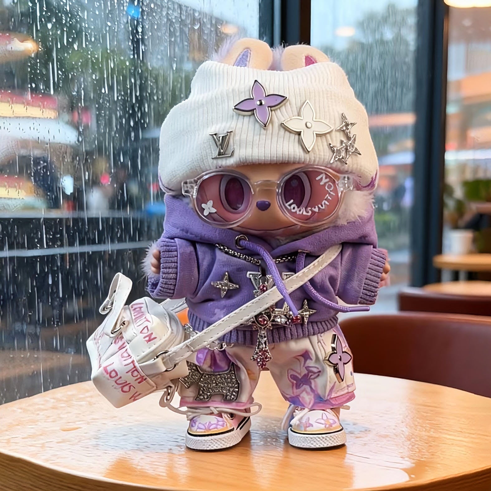 バッグ付き全身コーデで完璧なキメスタイル❤labubu 7点セット ラブブ ホワイト×パープル スーツコーデセット|15cm/17cm用 バッグ付き 上質素材 モードで可愛い 幻想的な配色のトレンドスタイル