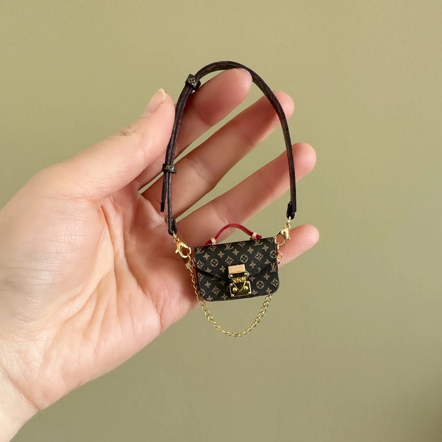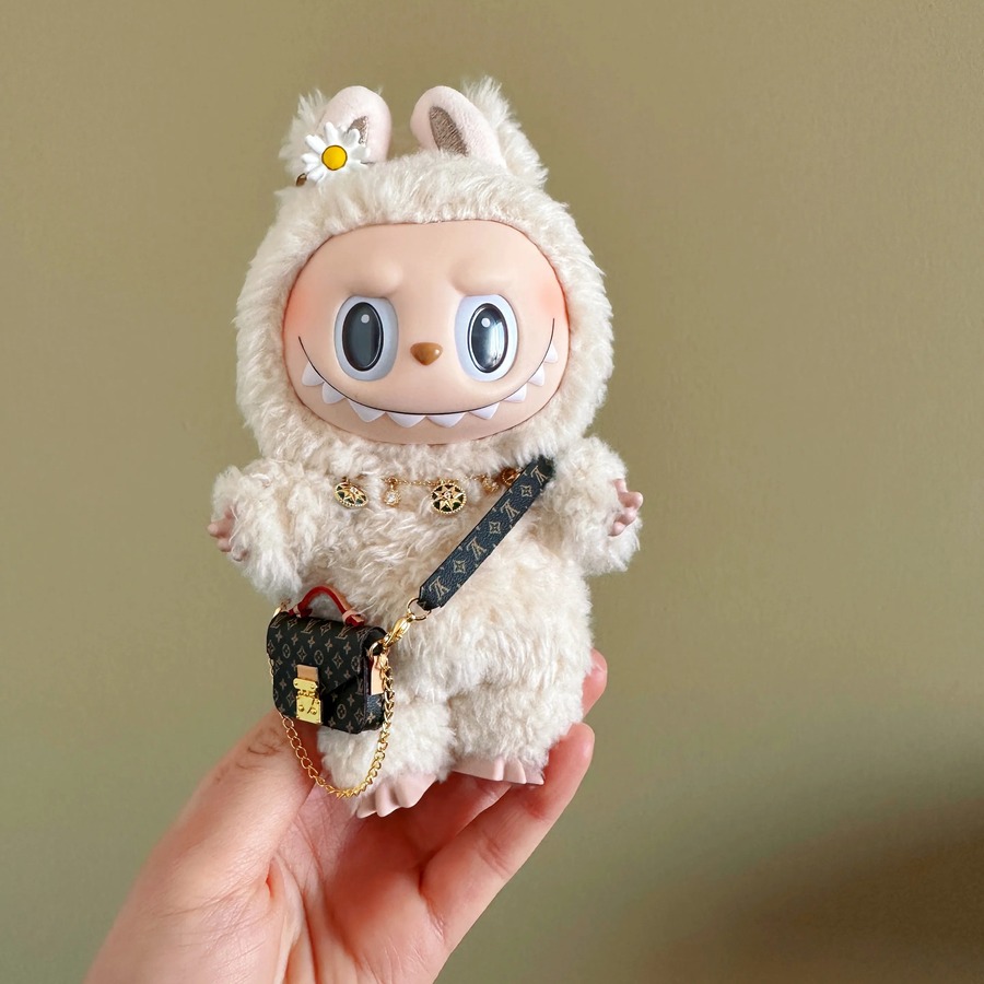 ラブブ用 上質チェーンショルダーバッグ!ブラウン カラーブロック labubu BJD対応 高品質 おしゃれ 精巧 可愛い