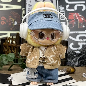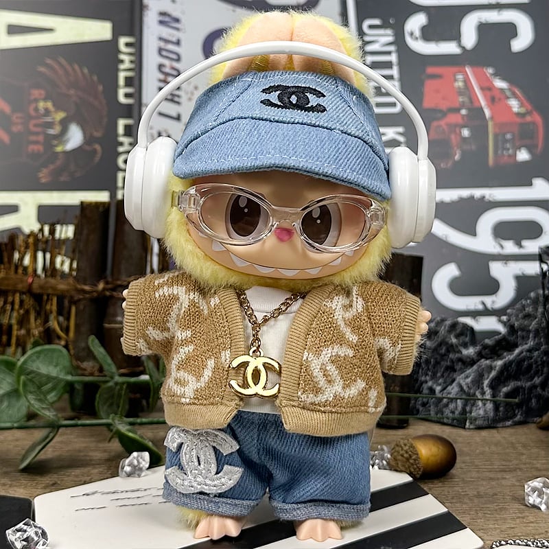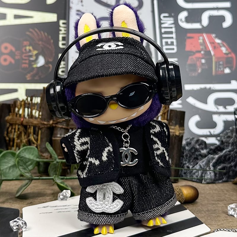 コンプリートコーデ! 首飾り付き labubu ラブブ 7点着せ替えセット 秋冬のおしゃれ着こな 15-17cm プレミアム品質 クールで可愛い