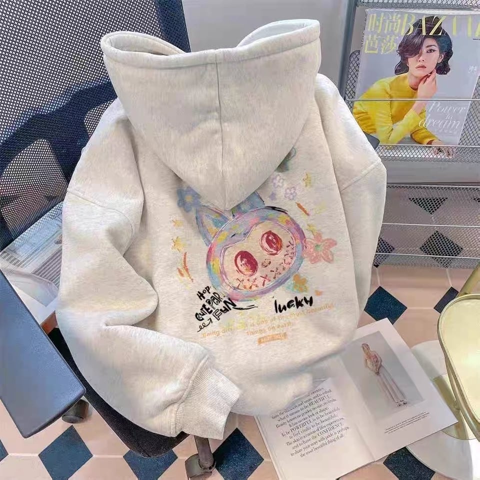 【商品名】アメリカンゆるっとラグジュアリー labubu ラブブ 落書きパーカー 男女兼用 ゆったり フード付き ふわふわ着心地 裏起毛/シングル選択可
