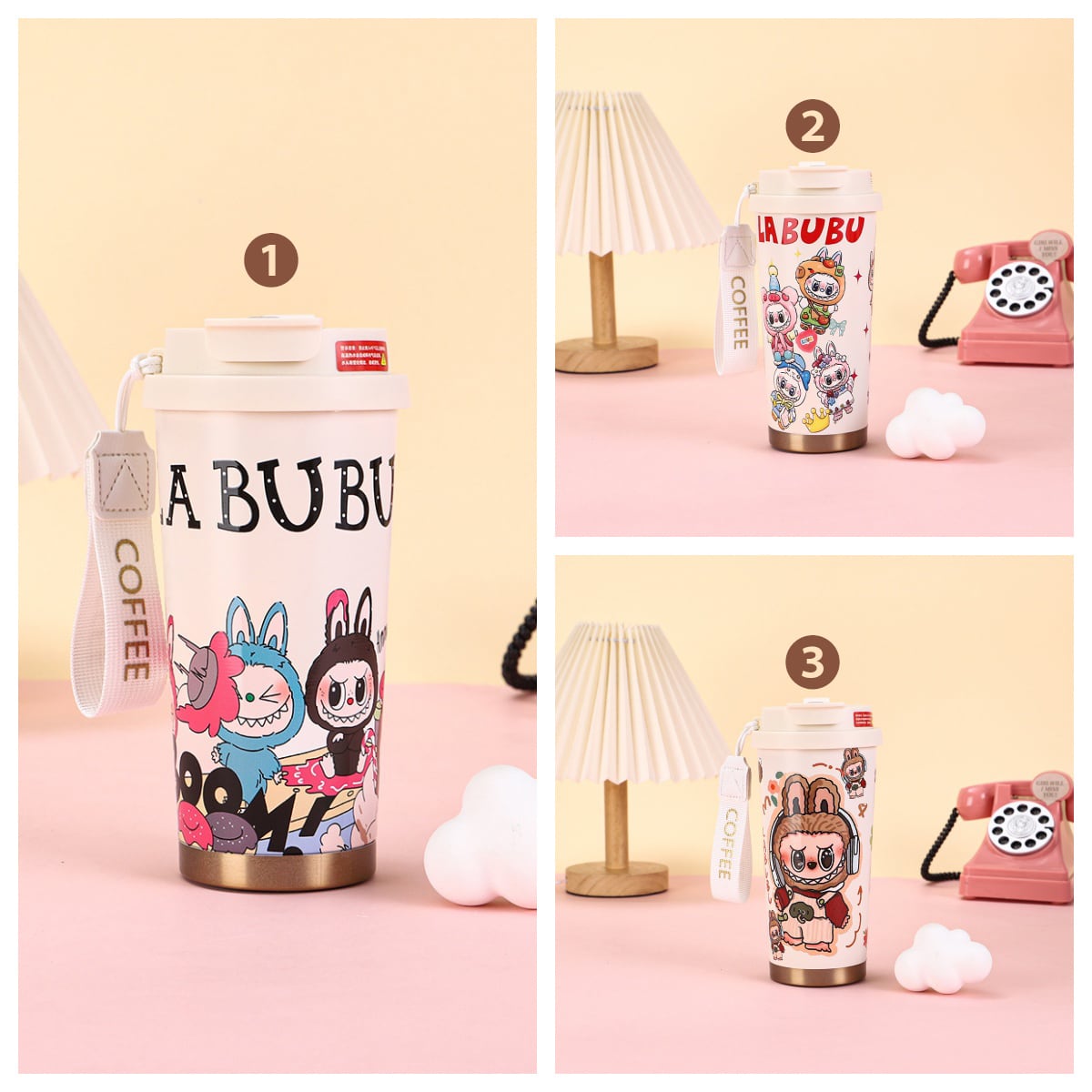 ギフトに最適!ラブブ可愛いデザイン♡ labubu 3D両用ストロー付き保温カップ 316ステンレス製 高品質 可愛いマイボトル コーヒー対応 ホット/アイス