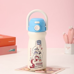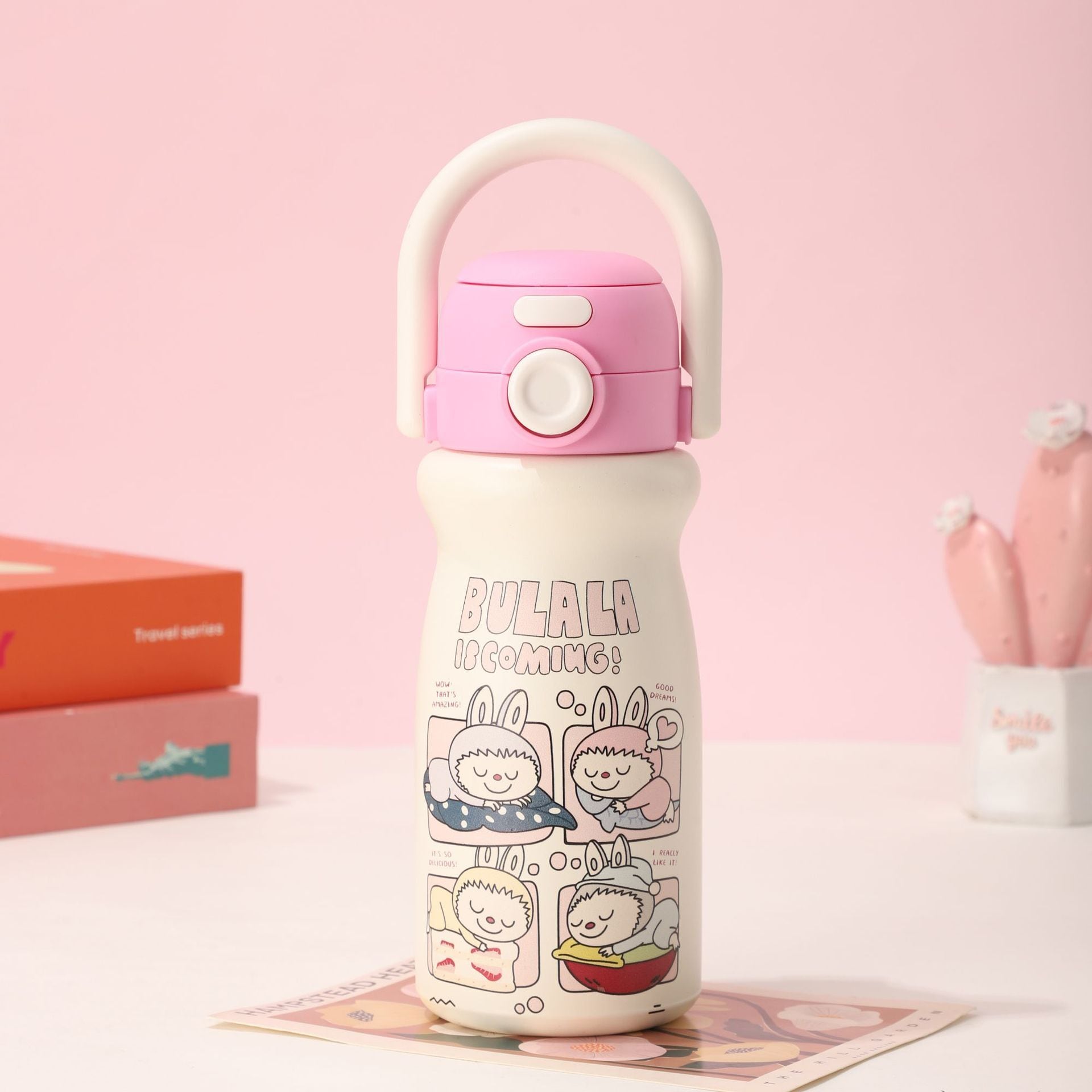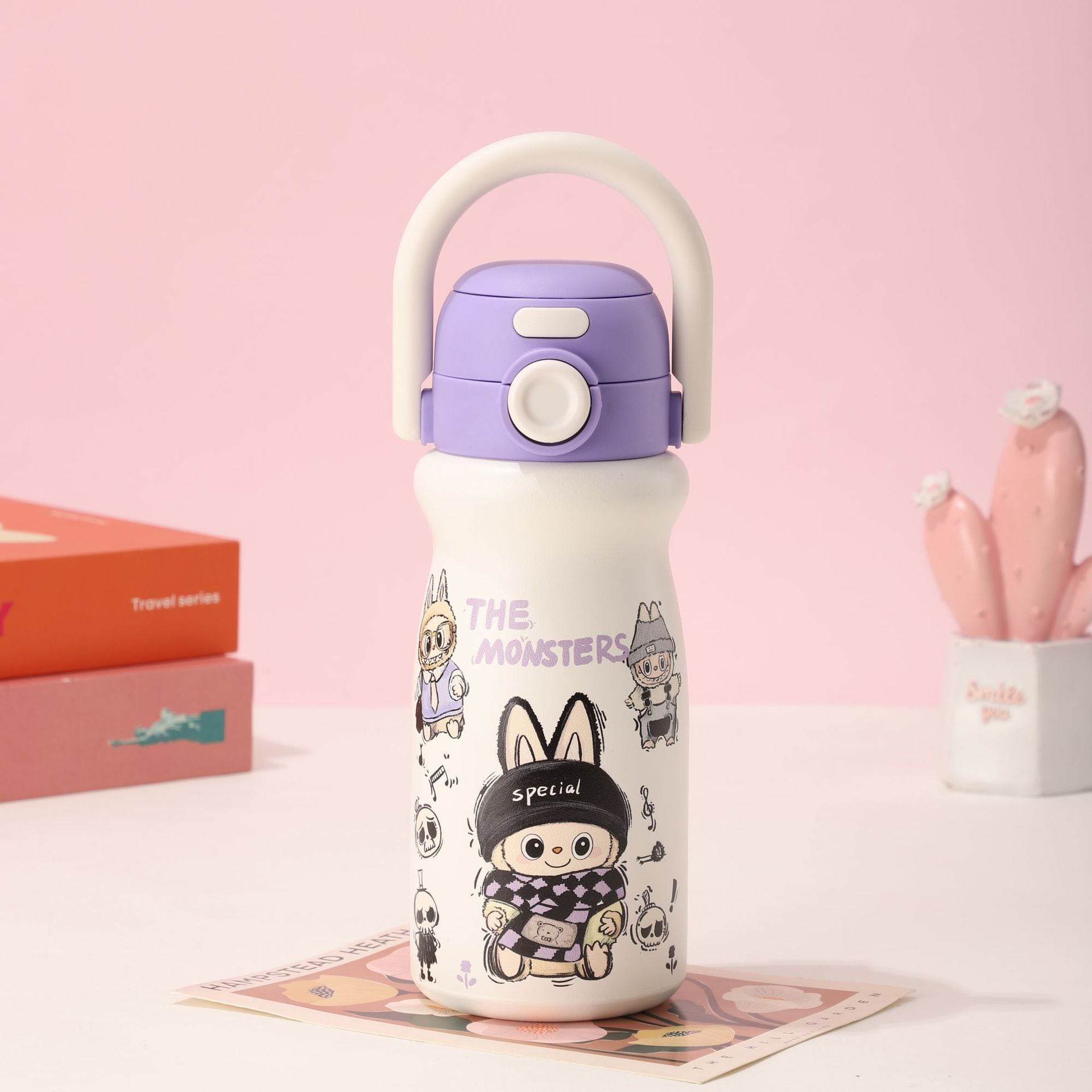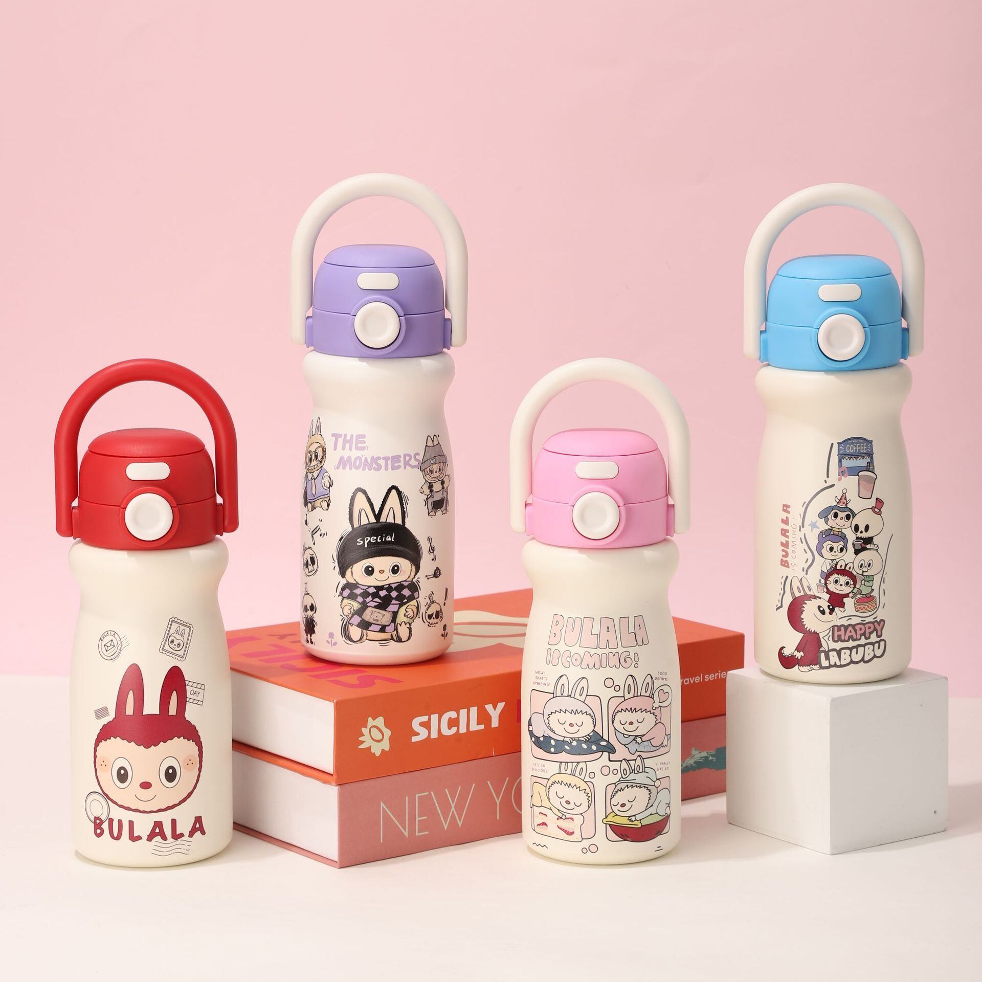 おしゃれで可愛い!ラブブ Labubuデザイン 保温マグ ステンレス製 携帯用 持ち手付き プレゼントにも最適 保温水筒 外出