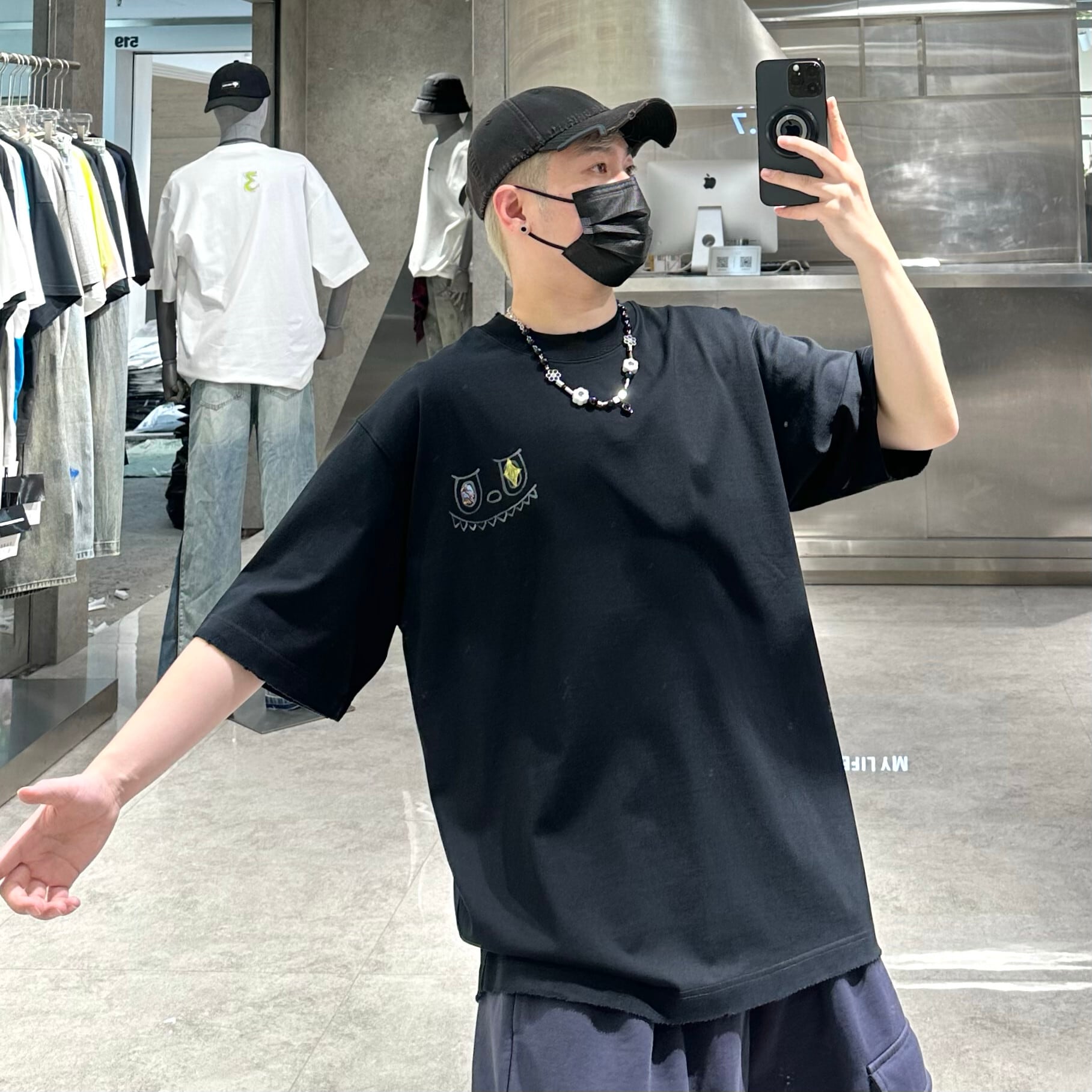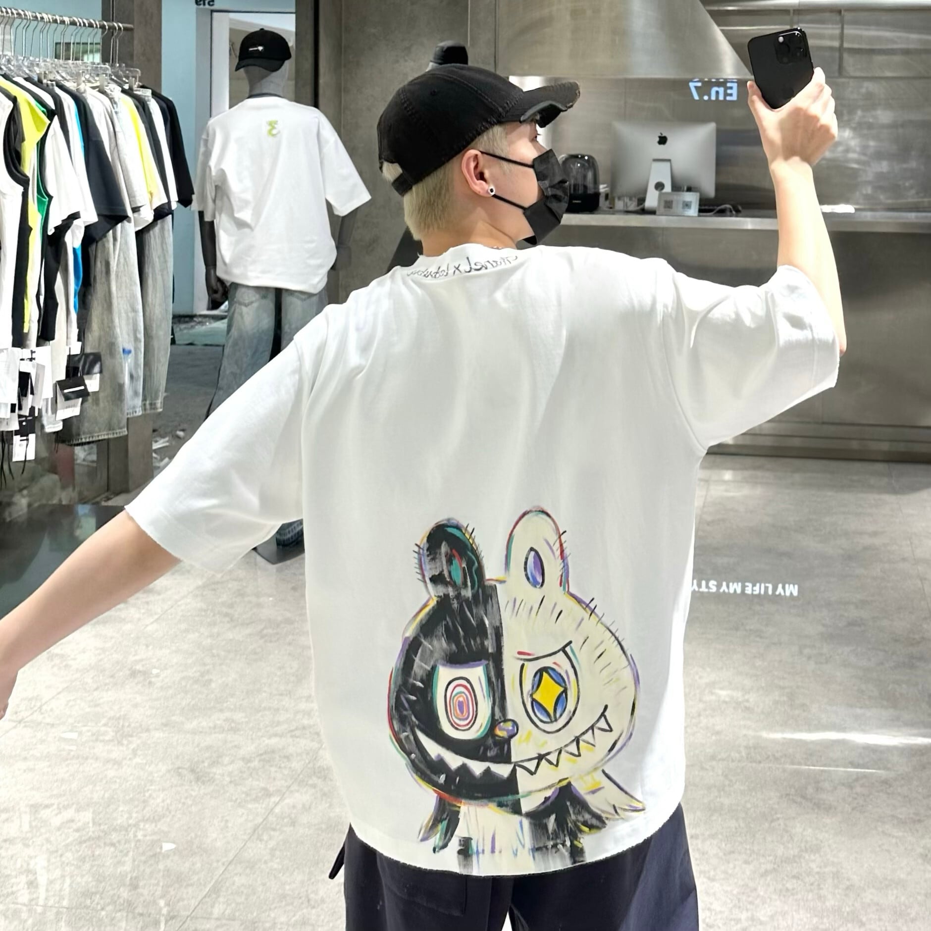 【商品名】330g labubu ハイウェイトTシャツ 厚手 オーバーサイズ ストリート ラブブ ハンドドローイング グラフィック ユニセックス ゆったり 高品質コットン