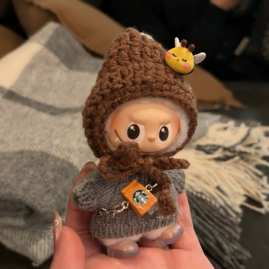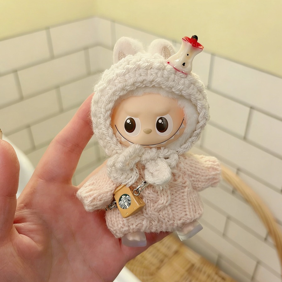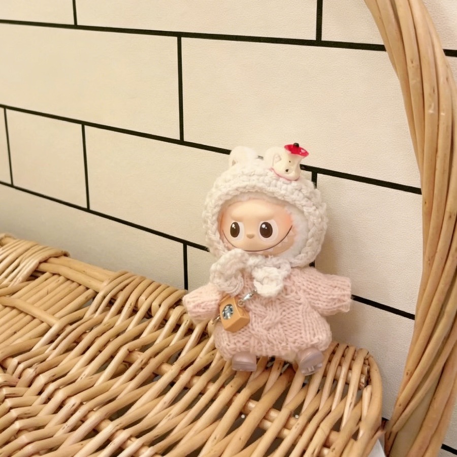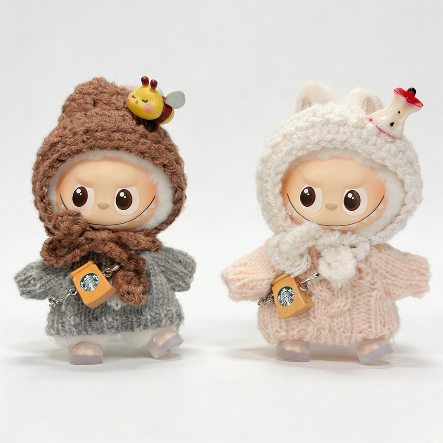モコモコ秋冬コーデ!10cm Labubu ラブブ4.0 専用 りんごとはちみつの可愛いニットセット めっちゃ可愛いドール服 コーディネート一式