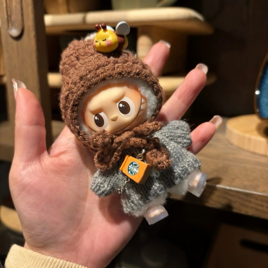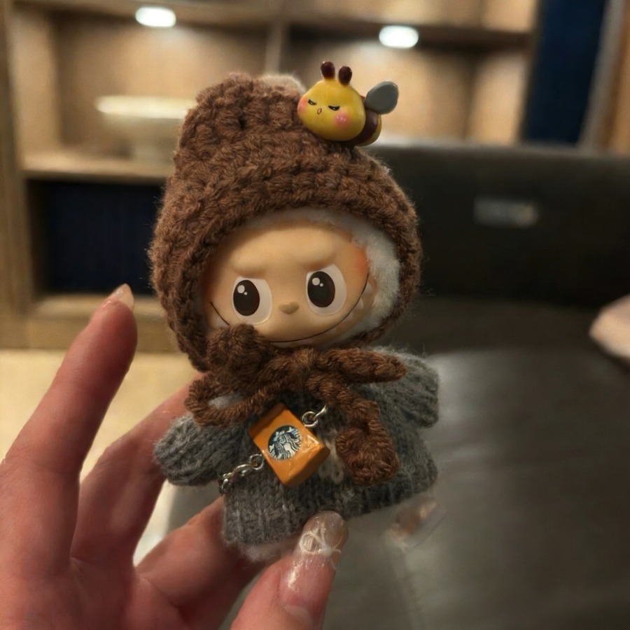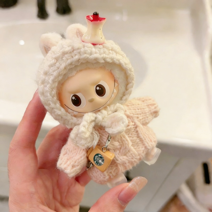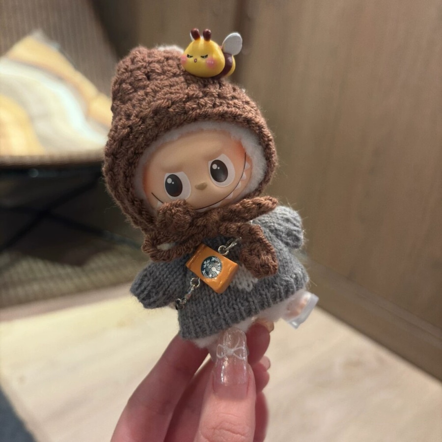 モコモコ秋冬コーデ!10cm Labubu ラブブ4.0 専用 りんごとはちみつの可愛いニットセット めっちゃ可愛いドール服 コーディネート一式