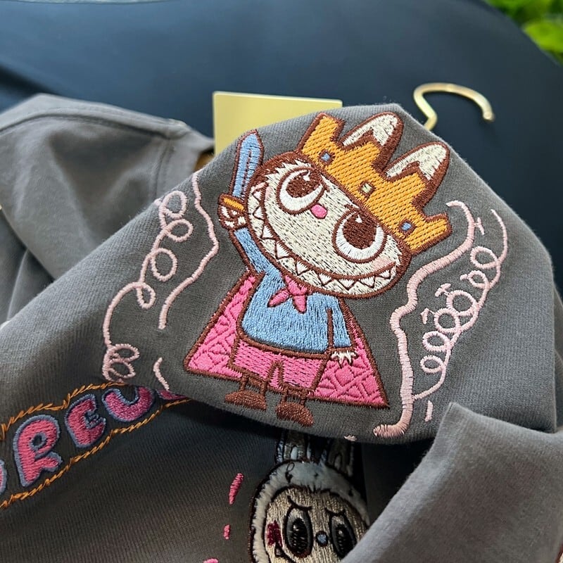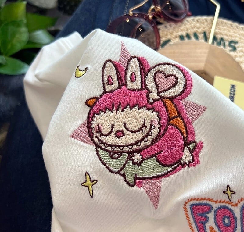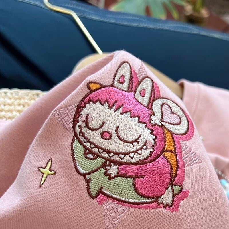 【商品名】Pandawarks×Labubu LAラブブ限定♡刺繍ロゴTシャツ オーバーサイズ 長袖 綿100% かわいい 若見え 秋冬 カジュアル 厚手 肌触り 抜群