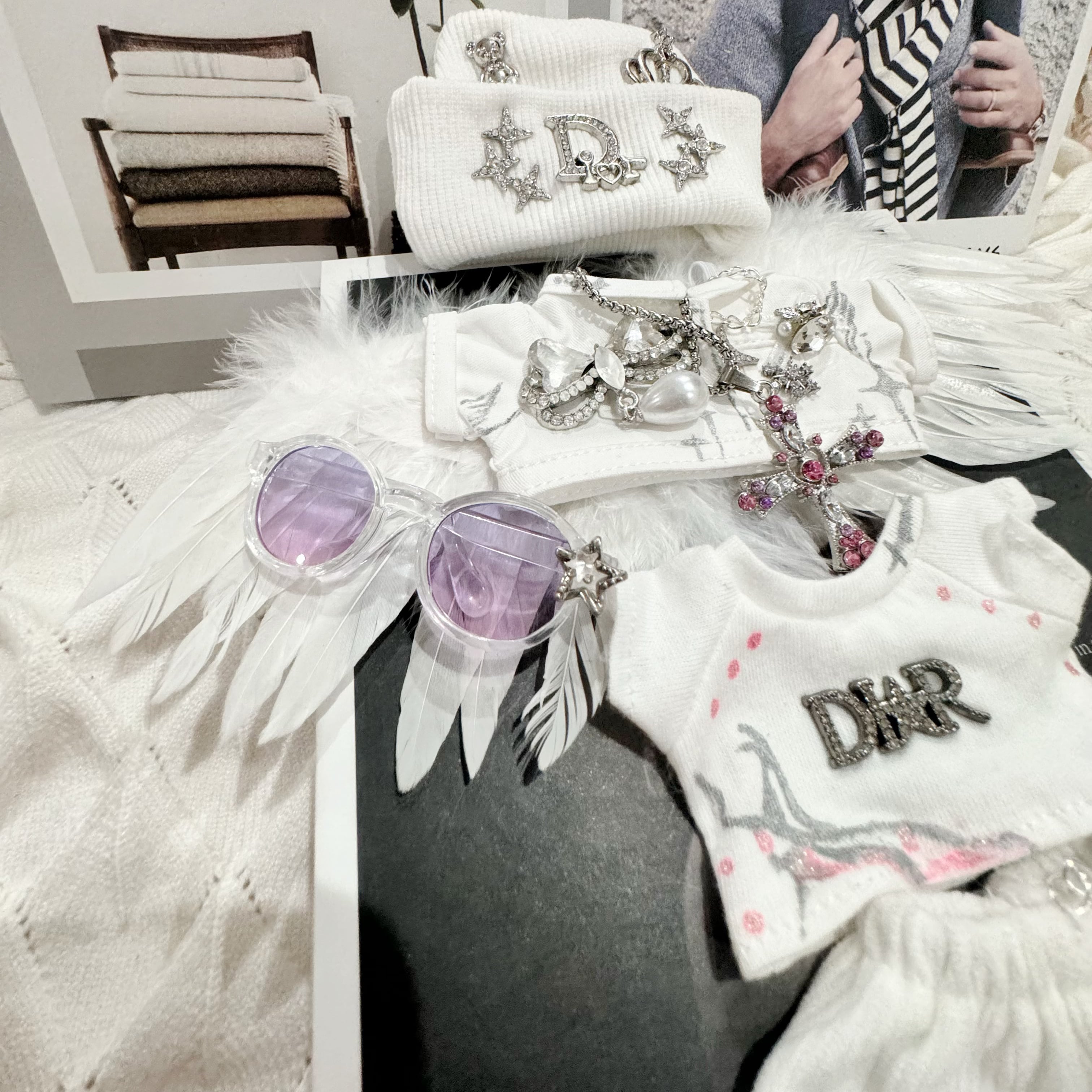 少量製作♡ スイート&クール Labubu 上品 お姫様エンジェルラブブ 衣装セット ダイヤモンドロゴ+羽根ウイング 15cm/17cm用