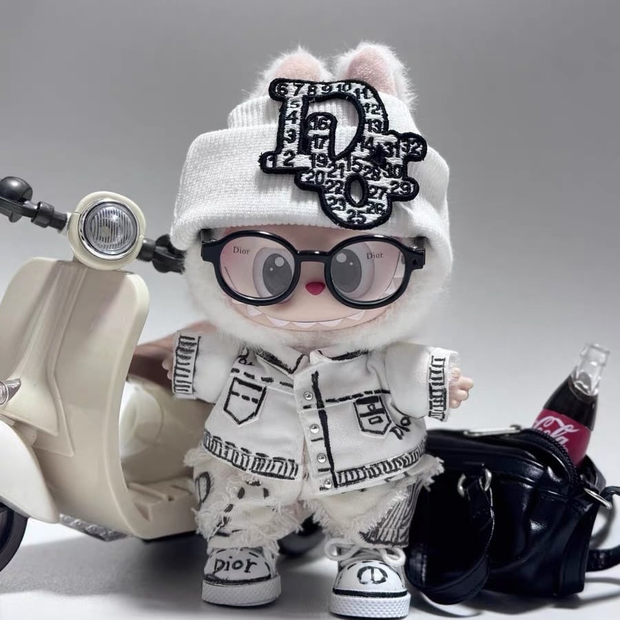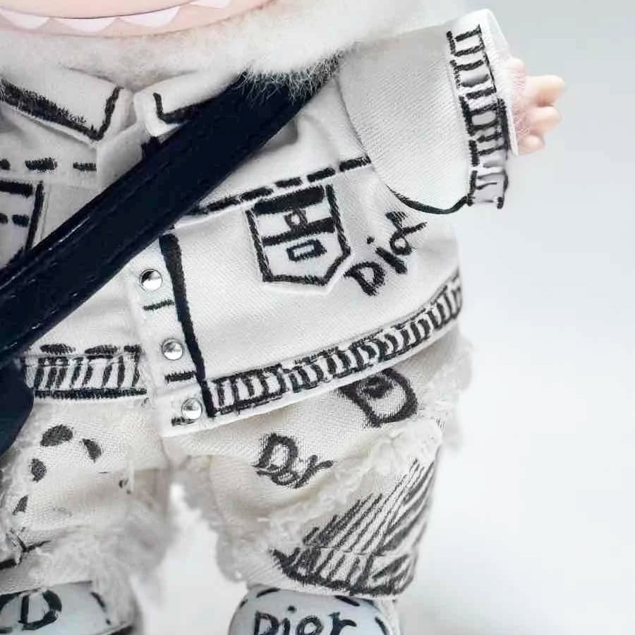 白黒ストリートクール!おしゃれ 限定風 高級 Labubu 15cm/17cm フルコーデ ドール服 着せ替えセット グラフィティストリート風