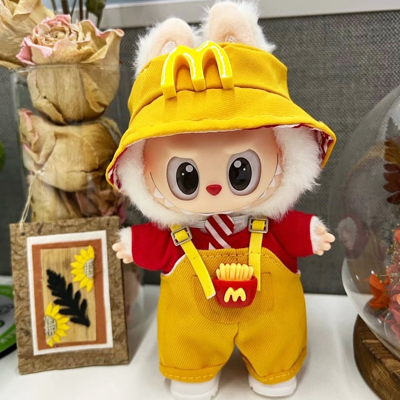 【ファーストフード店員風フルセット】ラブブ 15cm/17cm 対応 Labubu 着せ替え 3点+靴付き 可愛い 萌え コスチューム ドール服