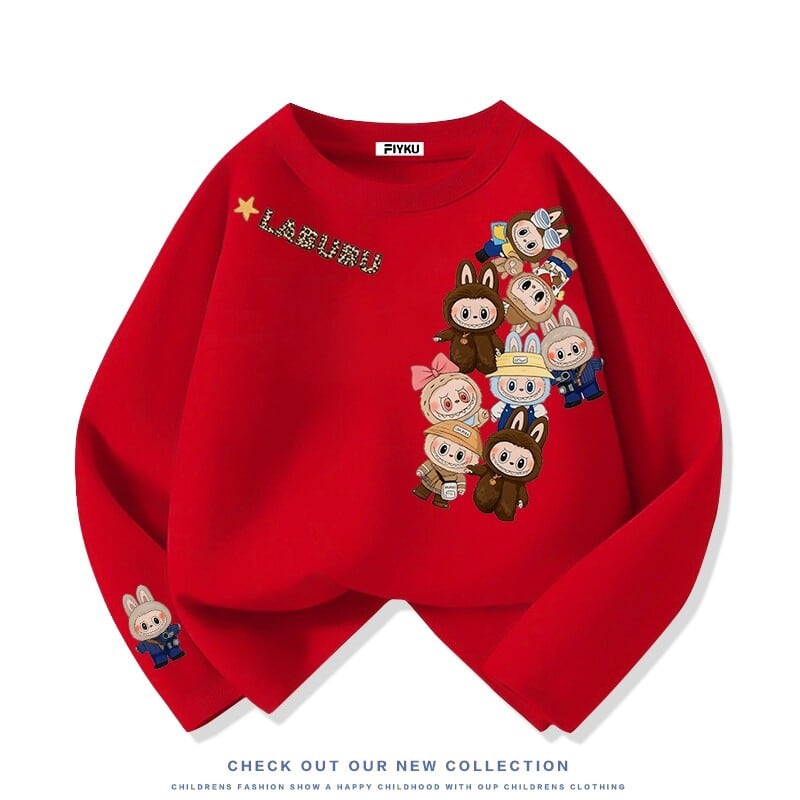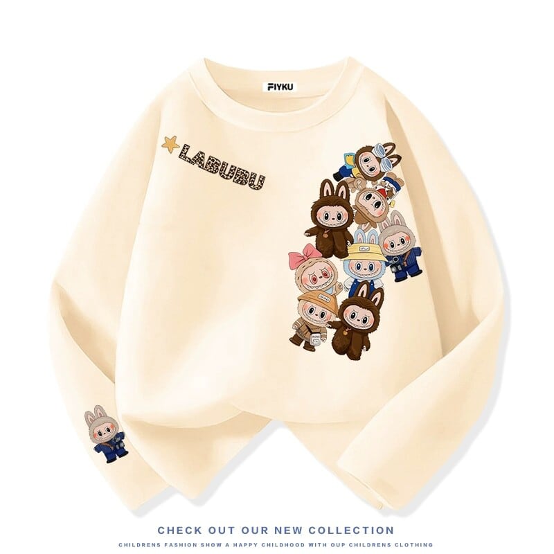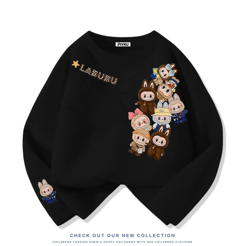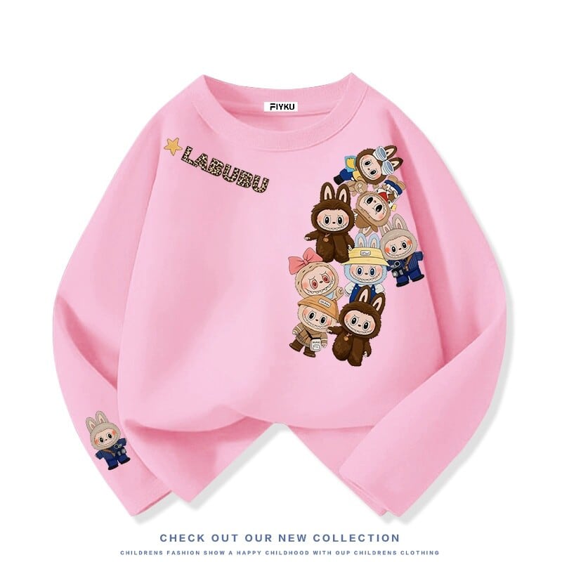 Labubu 綿100% 子供用 長袖Tシャツ オーガニックコットン 可愛い キュートなプリント 男女OK キッズ用