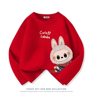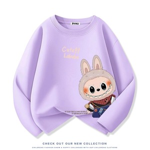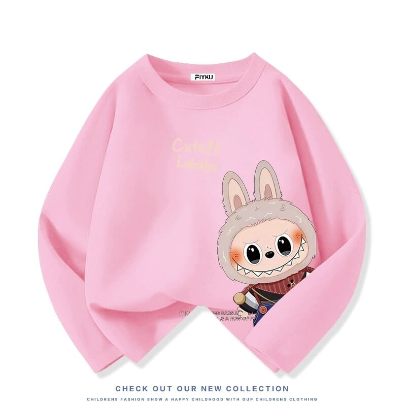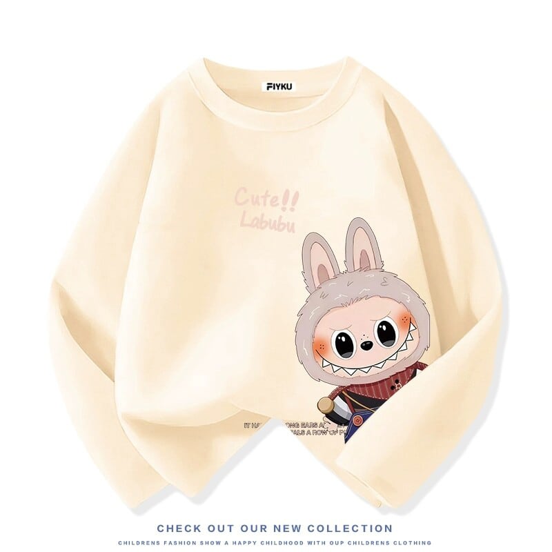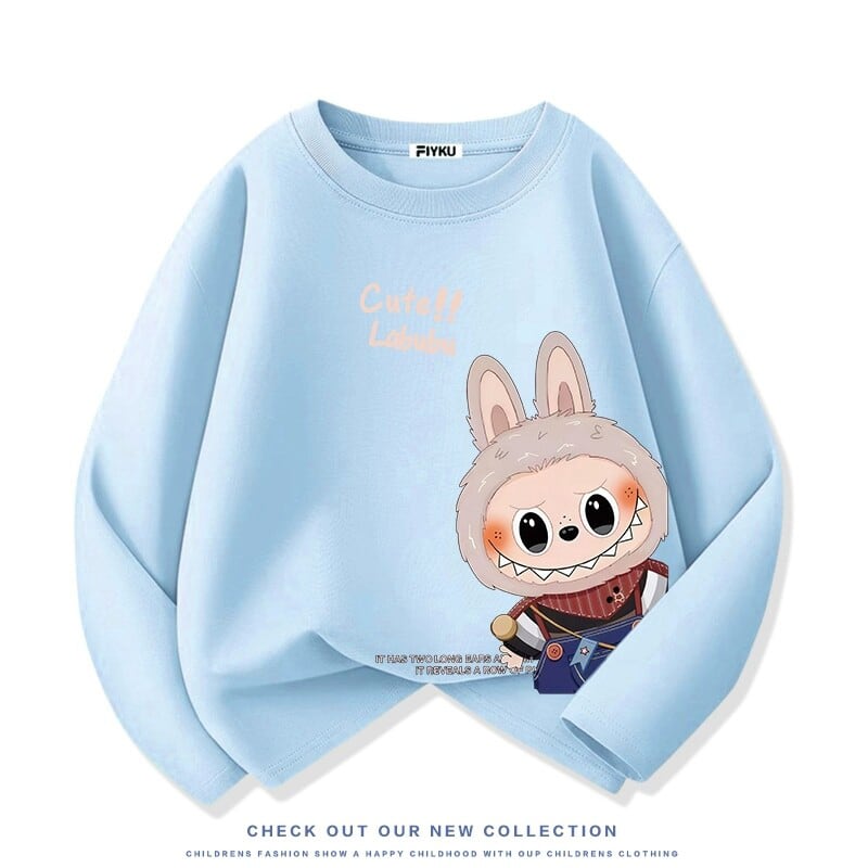 見てるだけで癒される可愛さ!Labubu どでか顔プリントTシャツ 綿100% 子供用長袖 男女兼用 キュートで可愛い ラブブ