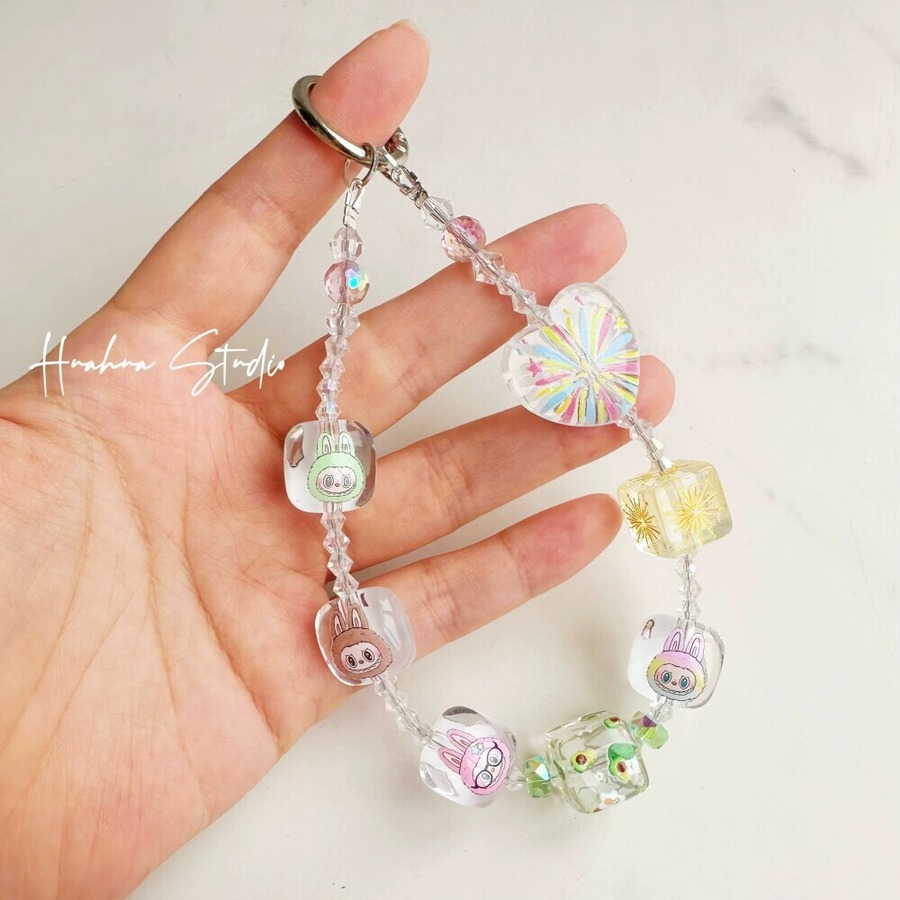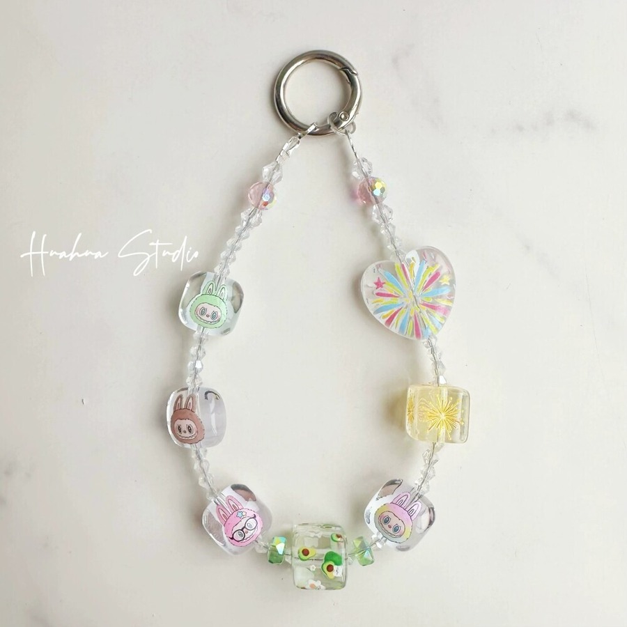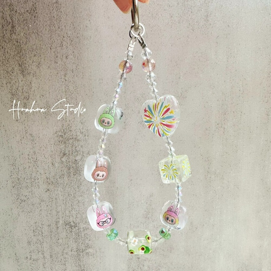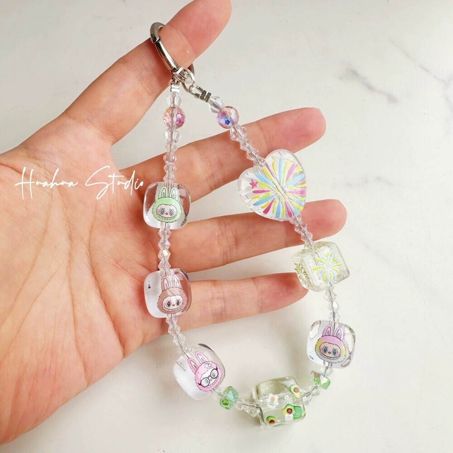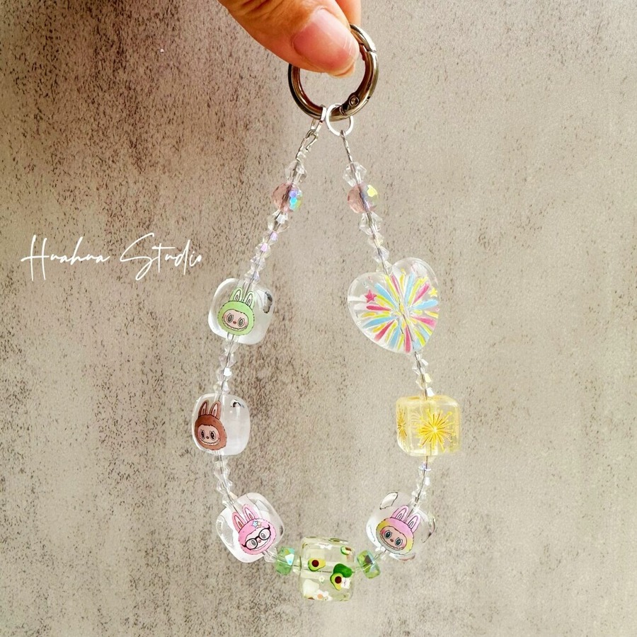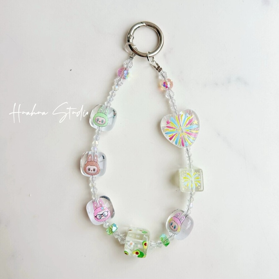 お得!花火が弾ける透明感♡ 水晶のように透き通るラブブのキーホルダー Labubu 水晶 透け感 花火 キーホルダー スマホストラップ バッグチェーン 透明 可愛い