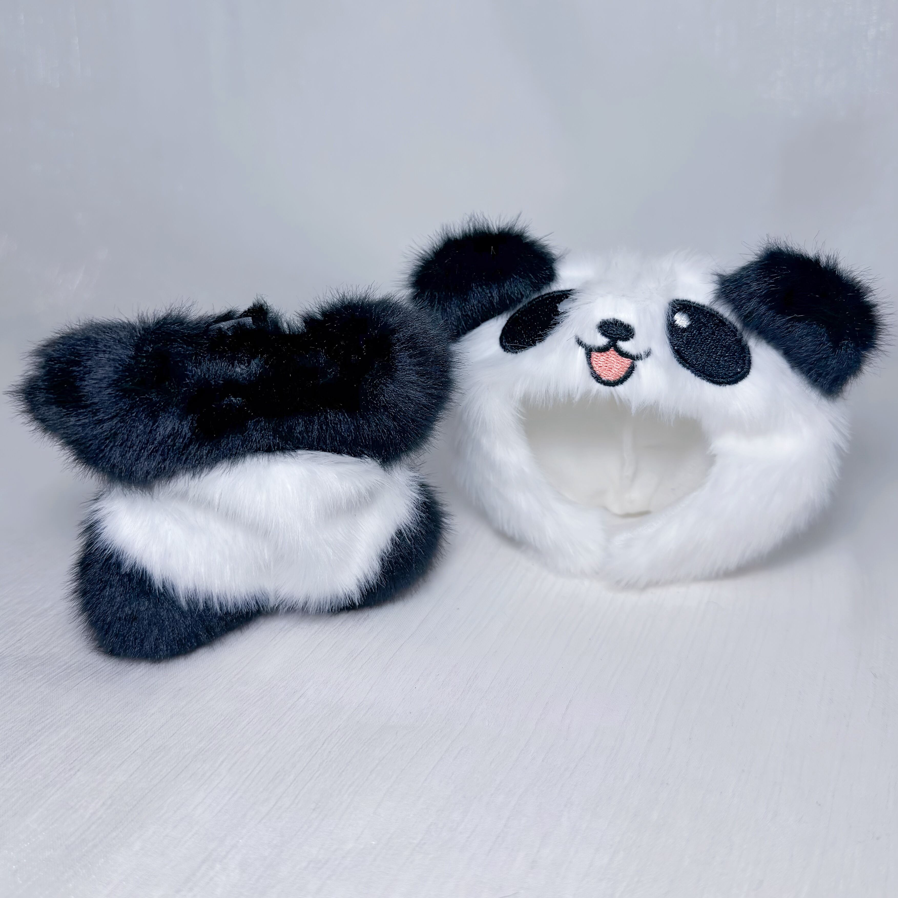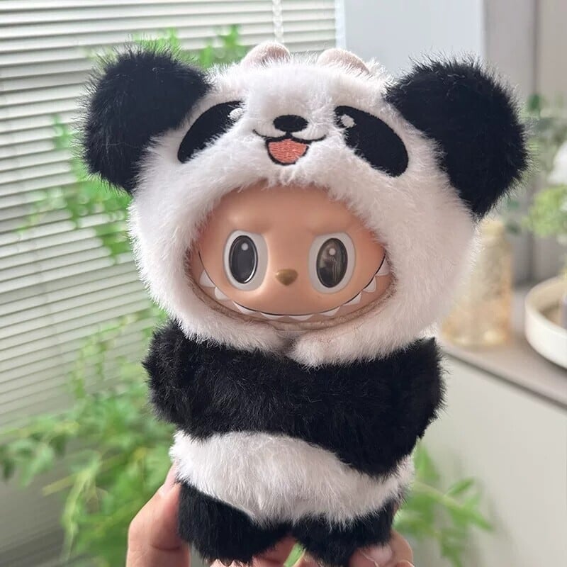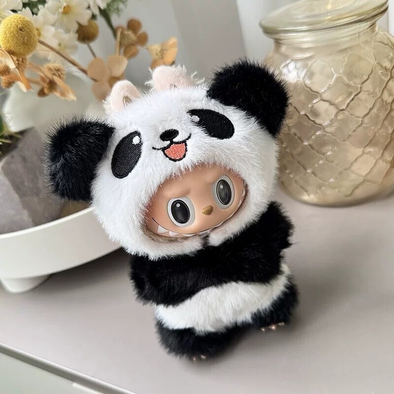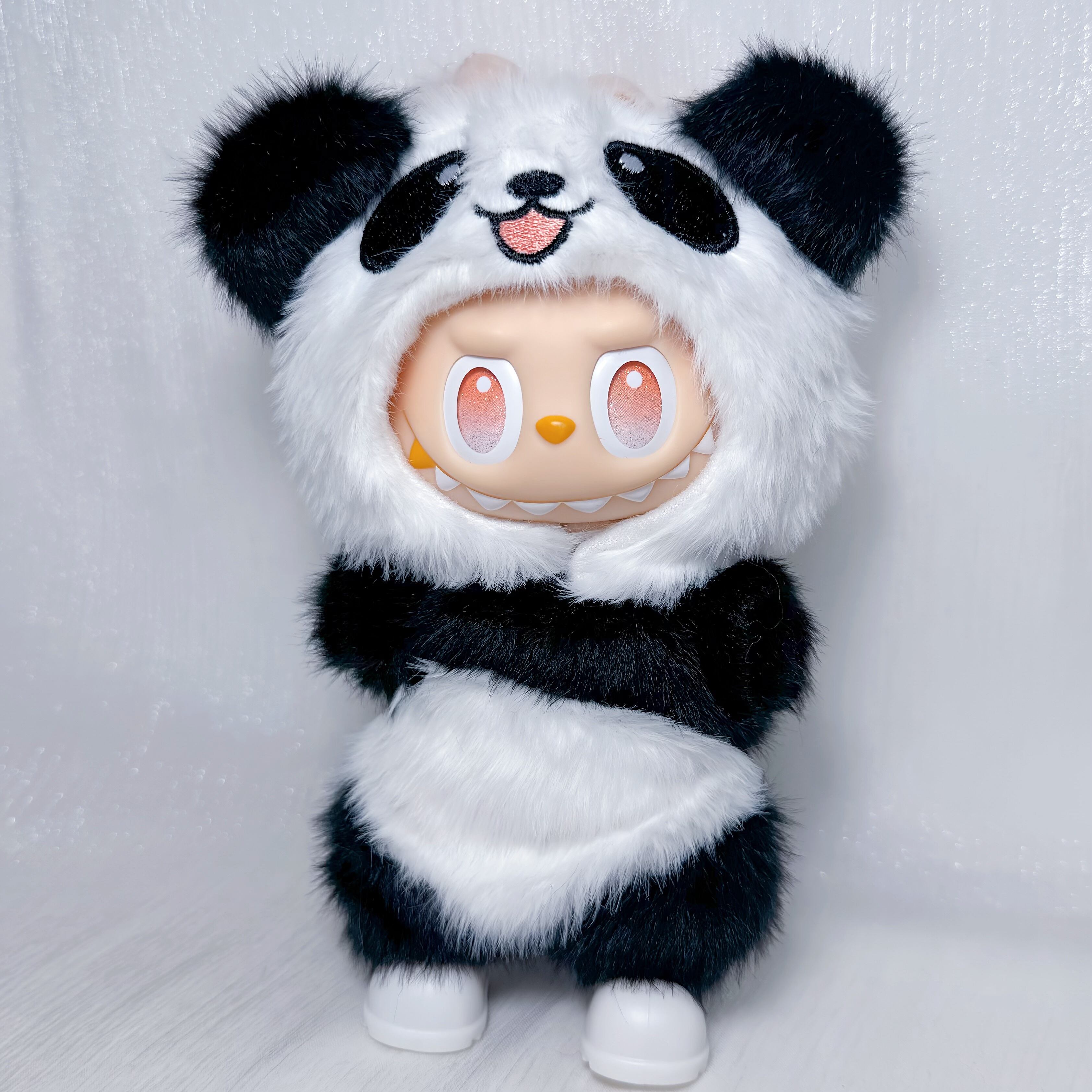 立体耳が可愛い!まるまるパンダに変身♡ Labubu ラブブ用 本格パンダコスチューム ふわふわパンダ衣装セット 15-17cm対応 着せ替え 動物セット The Monsters