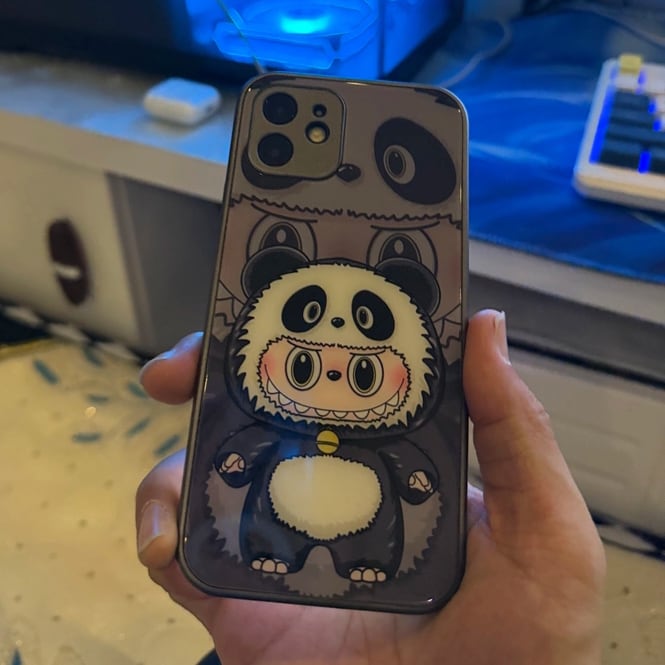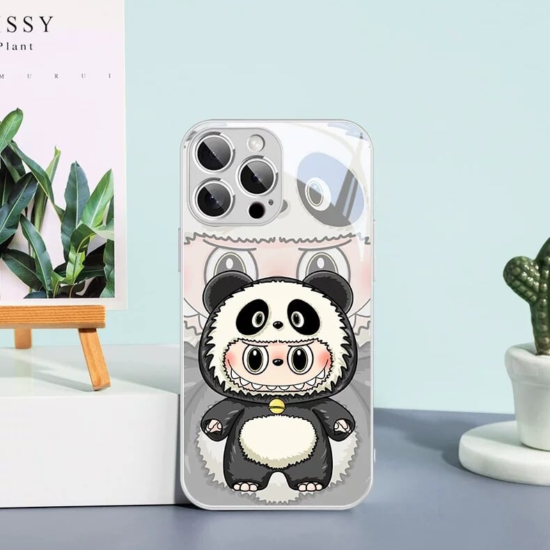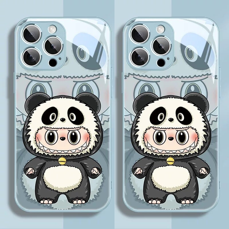 パンダ デザイン♡ 可愛い プレミアム Labubu ラブブ かわいいパンダ iPhone ケース 16 Plus/15 Pro Max/14 Pro対応 上品なガラス風 カップル向け