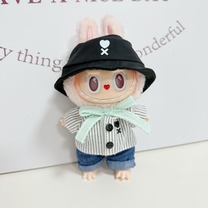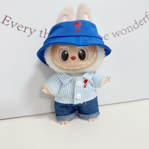 爽やかクールスタイル!ラブブ 帽子×ハートストライプT×ジーンズ 3点セット THE monsters 全シリーズ対応 15-17cm用 Labubu 可愛い おしゃれ
