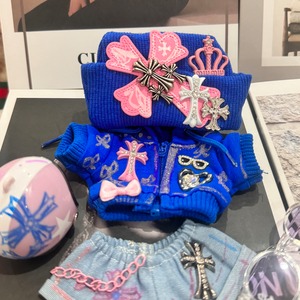 ビビッドカラーで魅せる!大胆フルコーデ Labubu 1.0/2.0/3.0用 15-17cm 個性的 ブルーピンク セットアップ おしゃれ 可愛い クール 個性的 The monsters