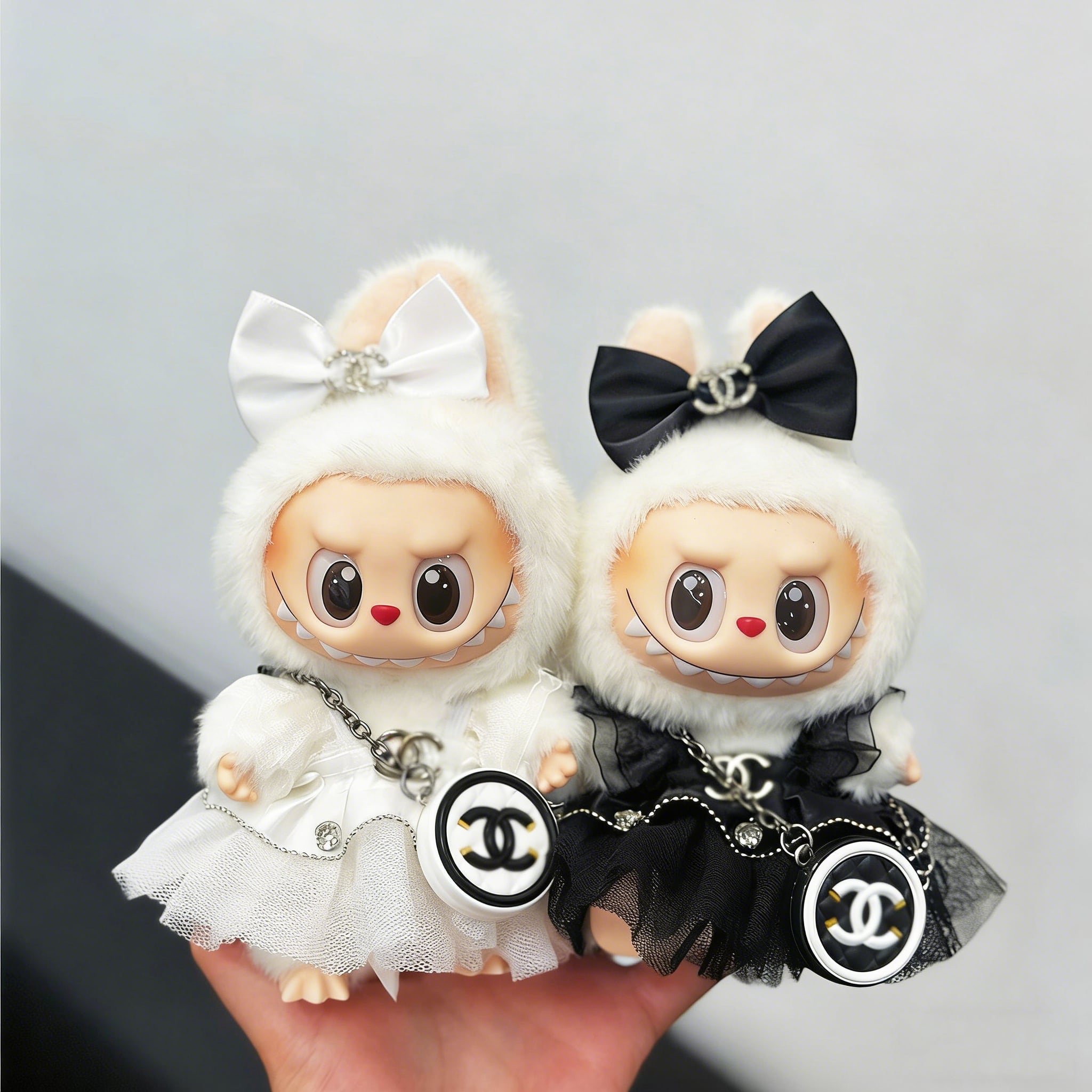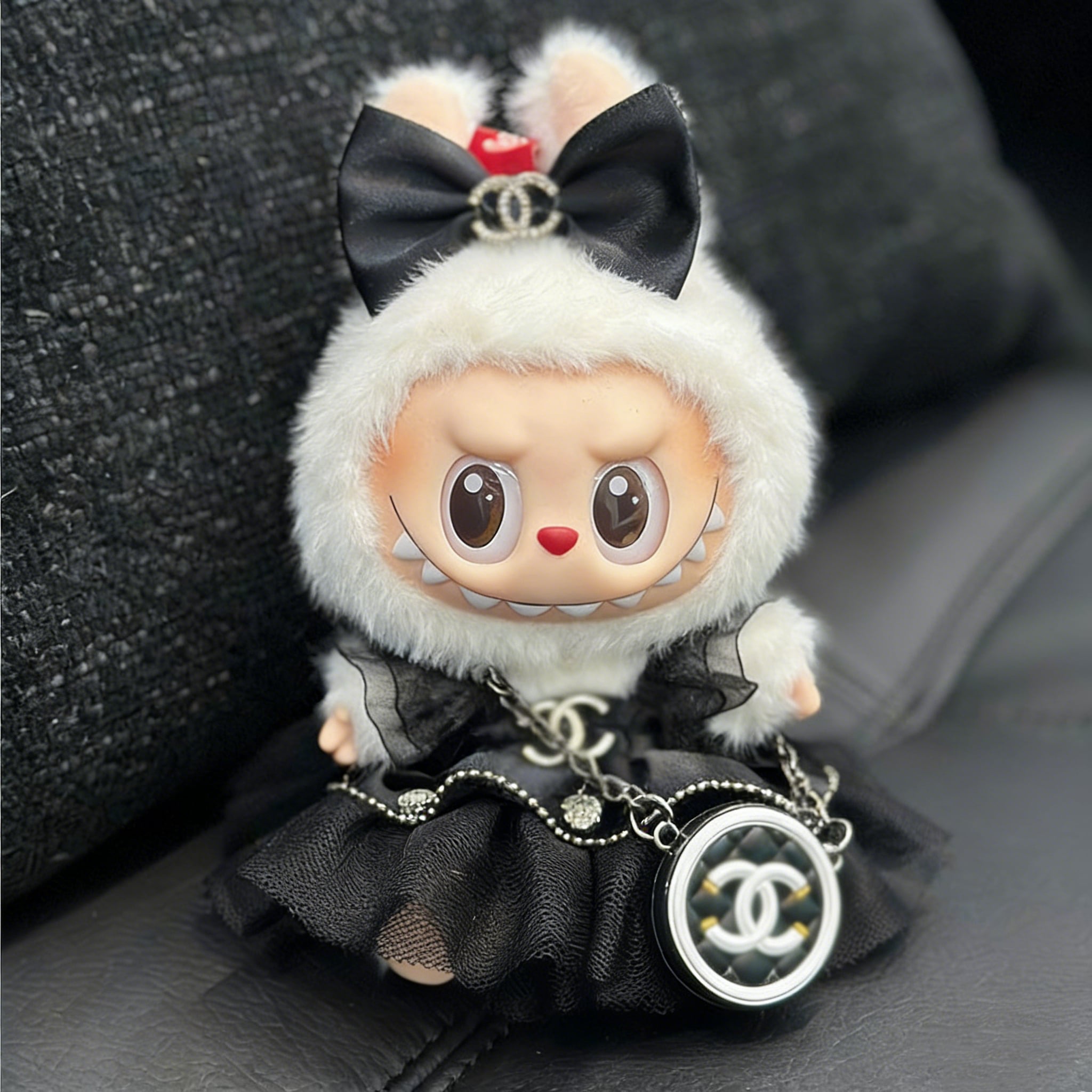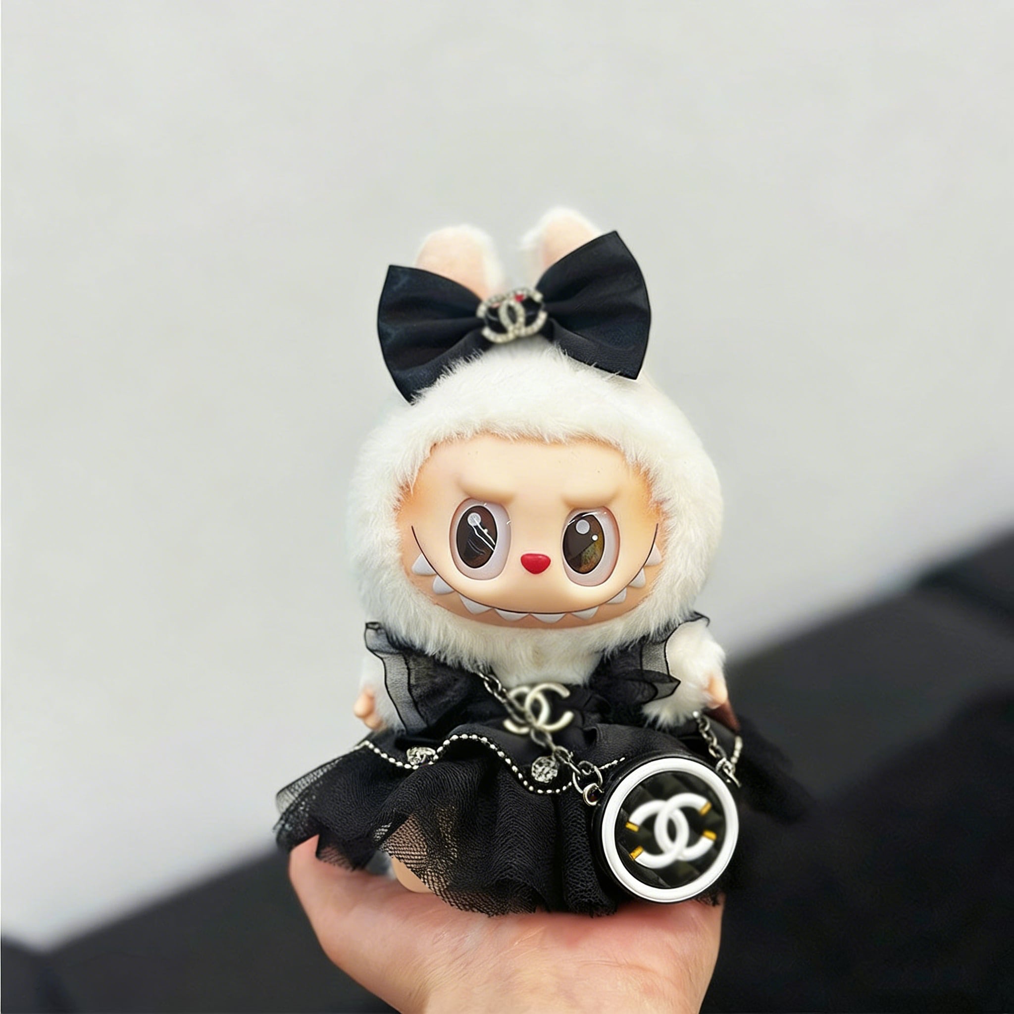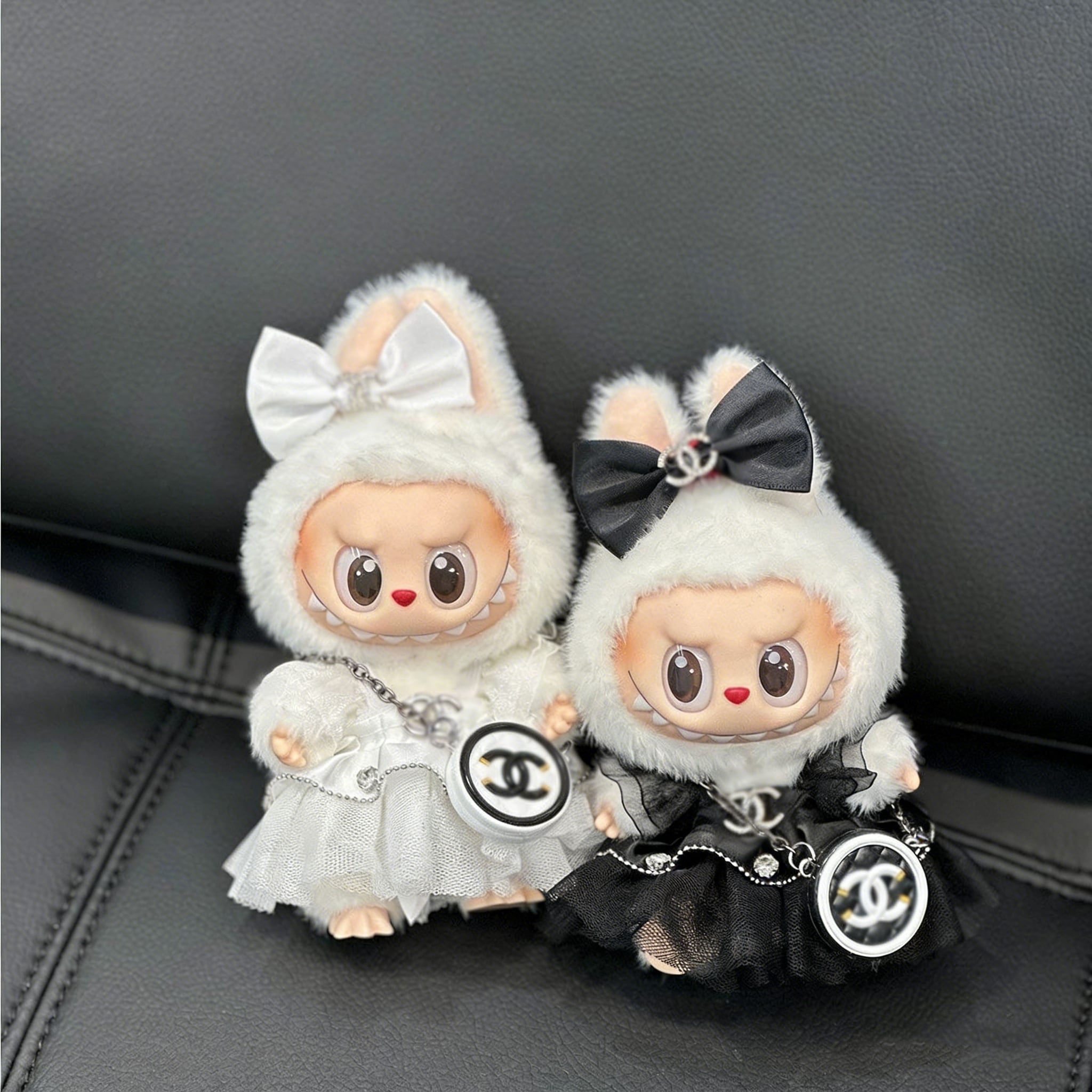 上品で高級感!エレガント 可愛い ♡ ラブブ用 モノクロ プリンセスドレス The Monsters 1.0-3.0対応 15-17cm Labubu ブラック/ホワイト