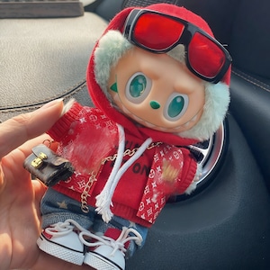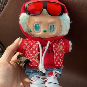 【商品名】赤で差がつく!Labubu ラブブ カジュアルコーデ 15-17cm 可愛くてクールな着回しファッション the monsters クール カッコ良さ