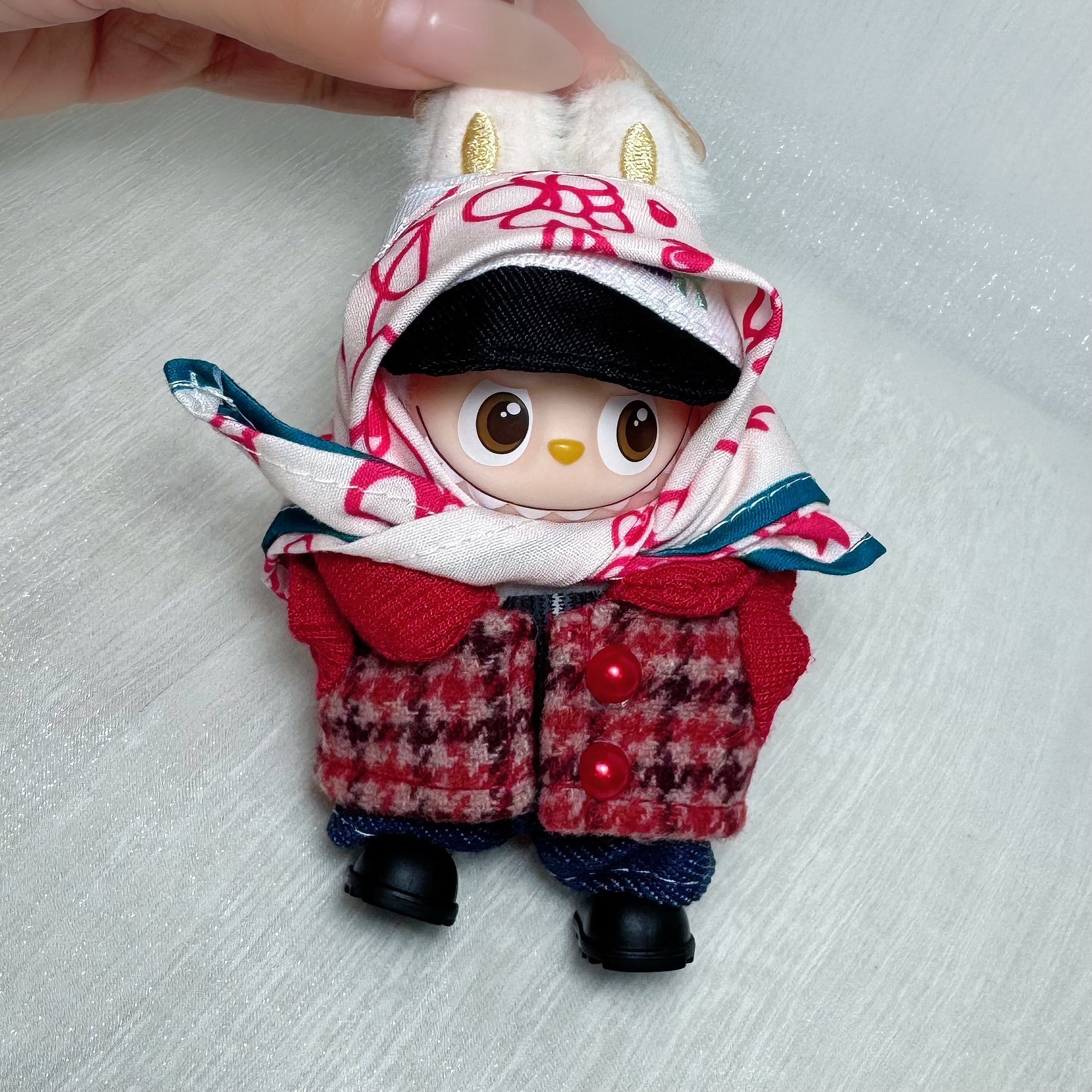 上質で可愛いデザイン!4.0 ラブブ Labubu 10cm ミニサイズ用 衣装セット 千鳥格子&ツイード 可愛い おしゃれ クール 上品