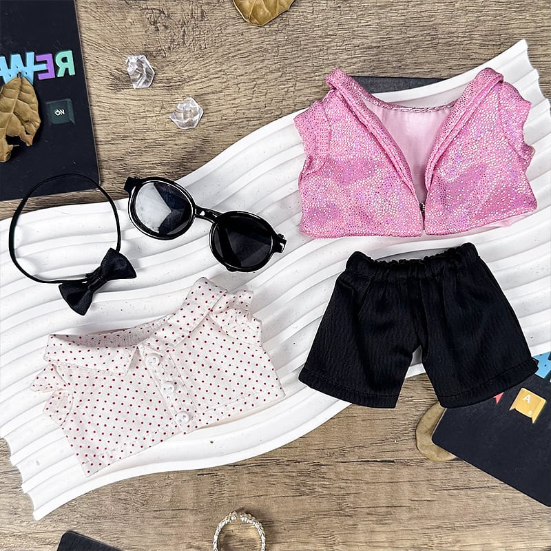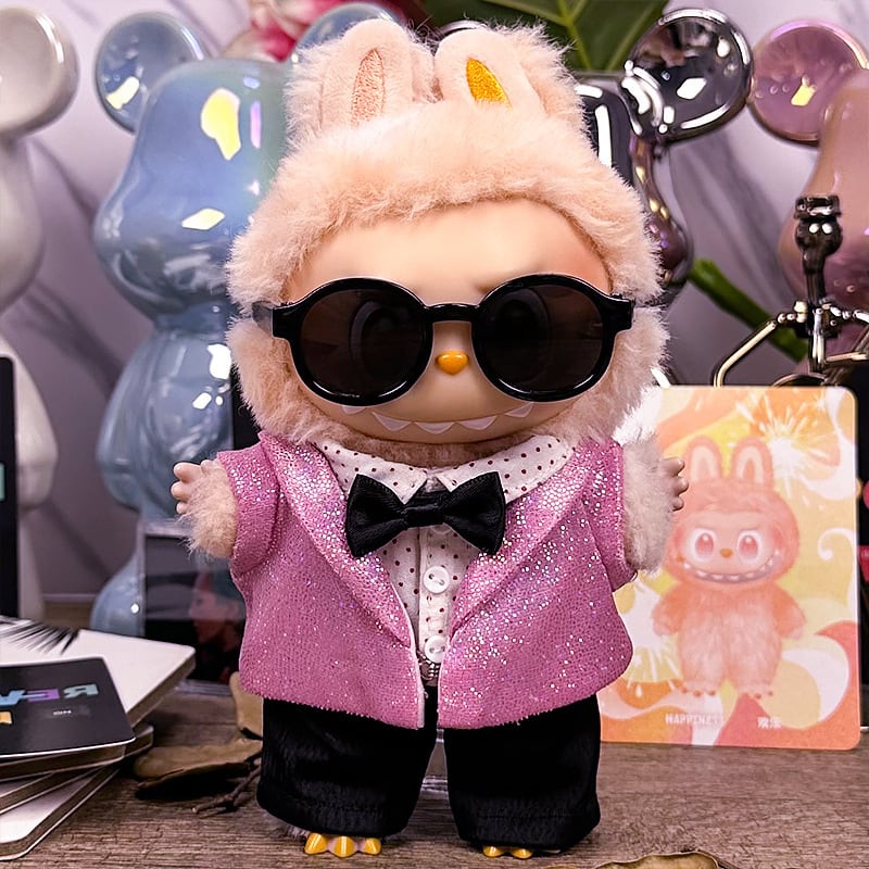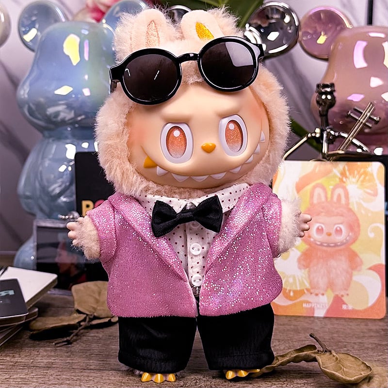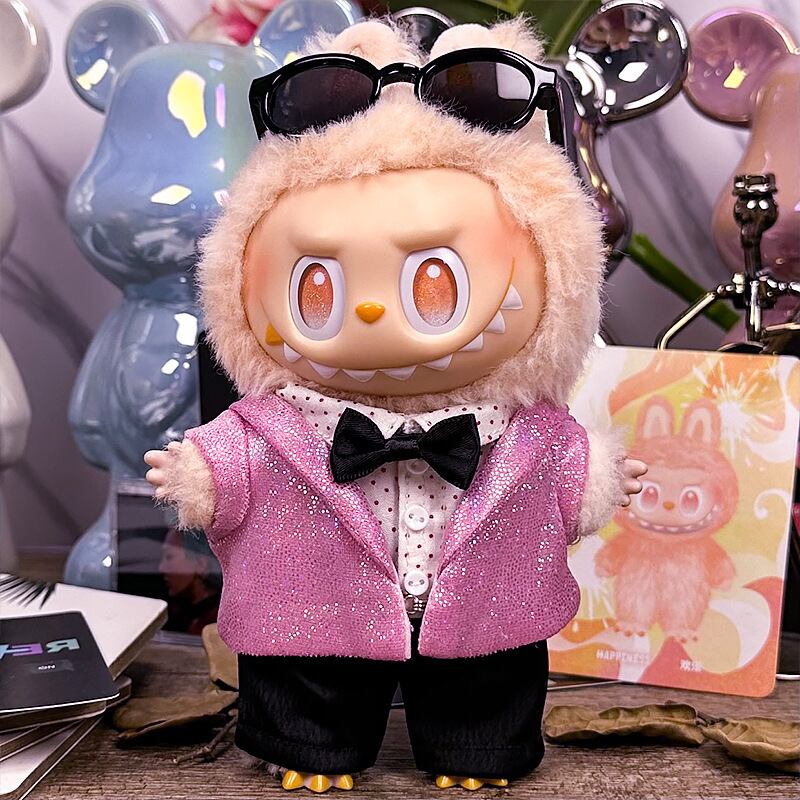 【商品名】注目のピンクラメ!華やかで可愛い Labubu 司会者風スーツセット 15-17cm 1.0-3.0対応 - 輝くクール&キュートコーデ the monsters クール