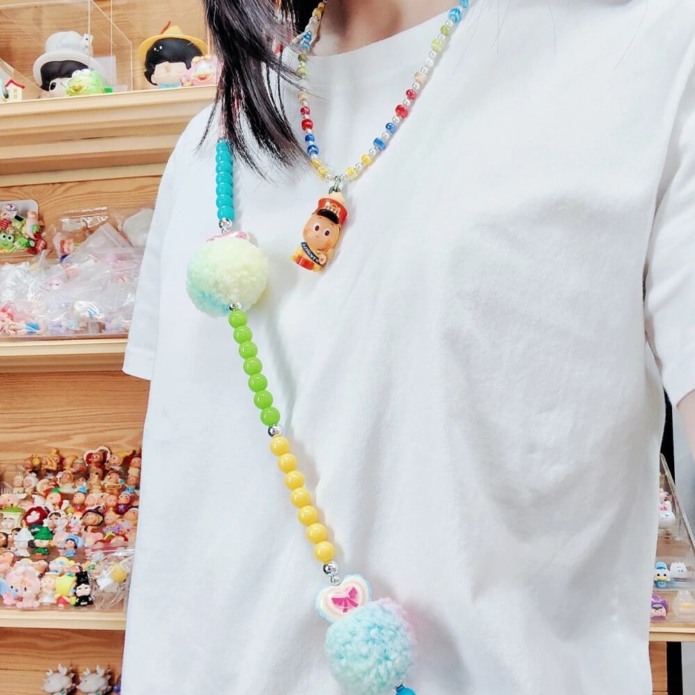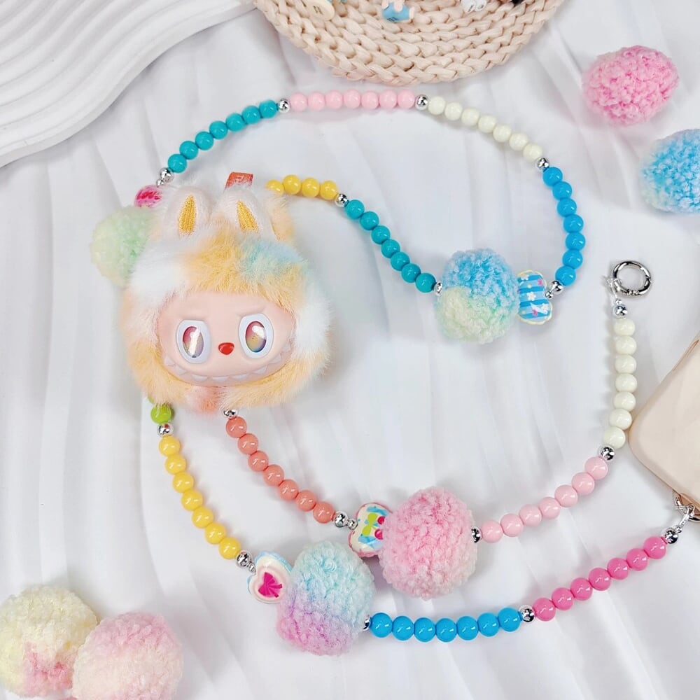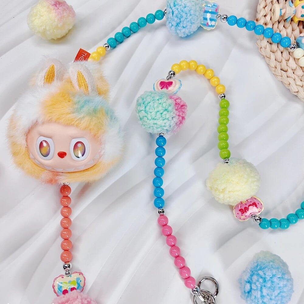 スマホにもバッグにも掛けられる!ラブブ Labubu ショルダーチェーン ビニルヘッド Rock the universe ポンポン付き ドーパミン ギフト 可愛いコーデに