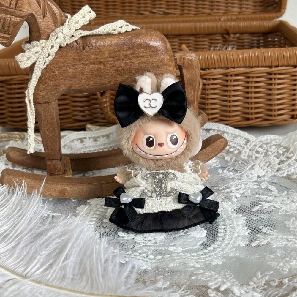 モノクロームの品格!洗練された可愛さ ゴージャス 4.0 10cm Labubu プリンセスドレスセット 上品で可愛い ブラック&ホワイトの貴族風コスチューム ラブブ