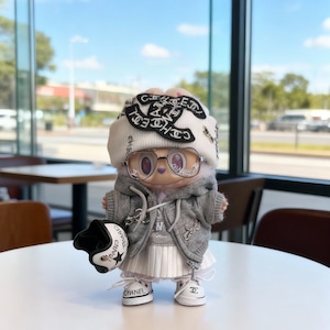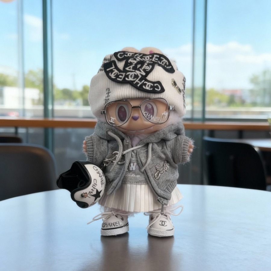 スウィートクール!高級感たっぷり ♡ Labubu グレー系 おしゃれコーデ フルセット 全6点 高級素材 15-17cm 着せ替え ラブブ the monsters