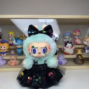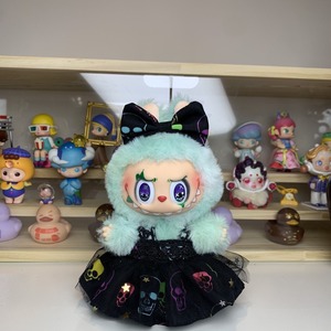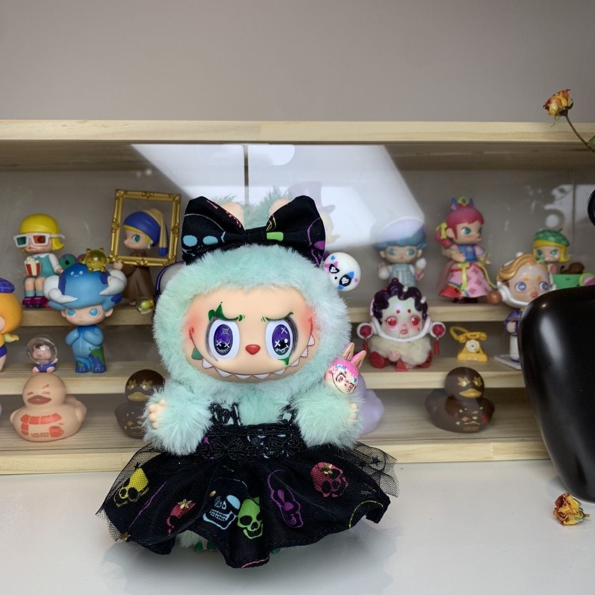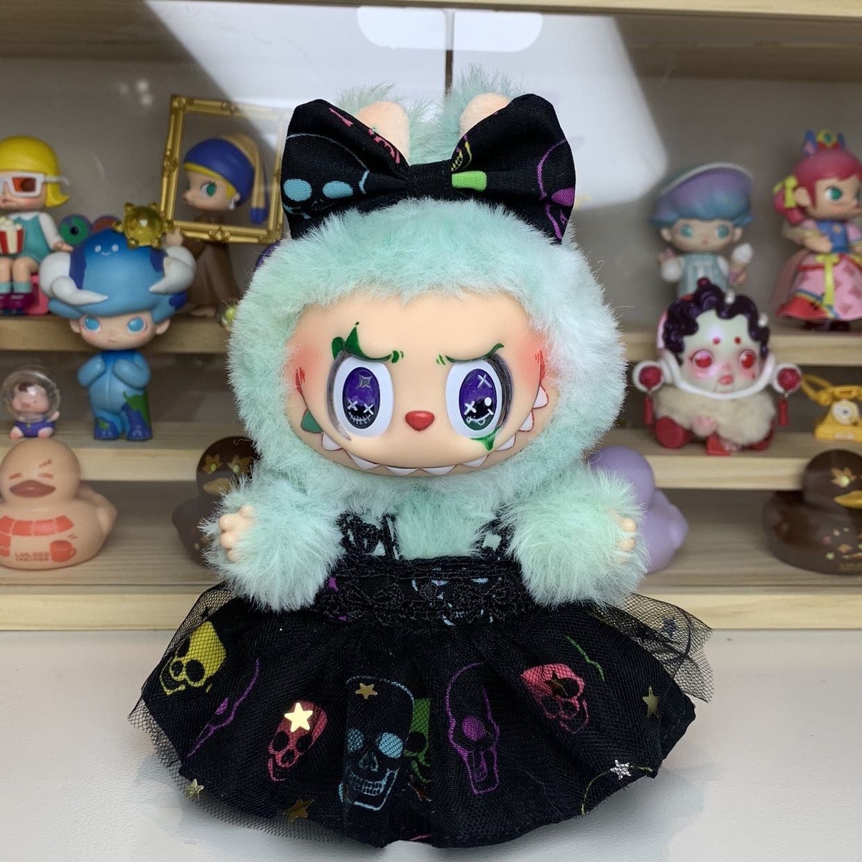 【ダーク&クール】黒系ゴシックセット Labubu ラブブ スカルゴシック衣装 フルセット 15-17cm ドレス/ヘアバンド/頭飾り付き 着せ替え the monsters 1.0 2.0 3.0 labubu