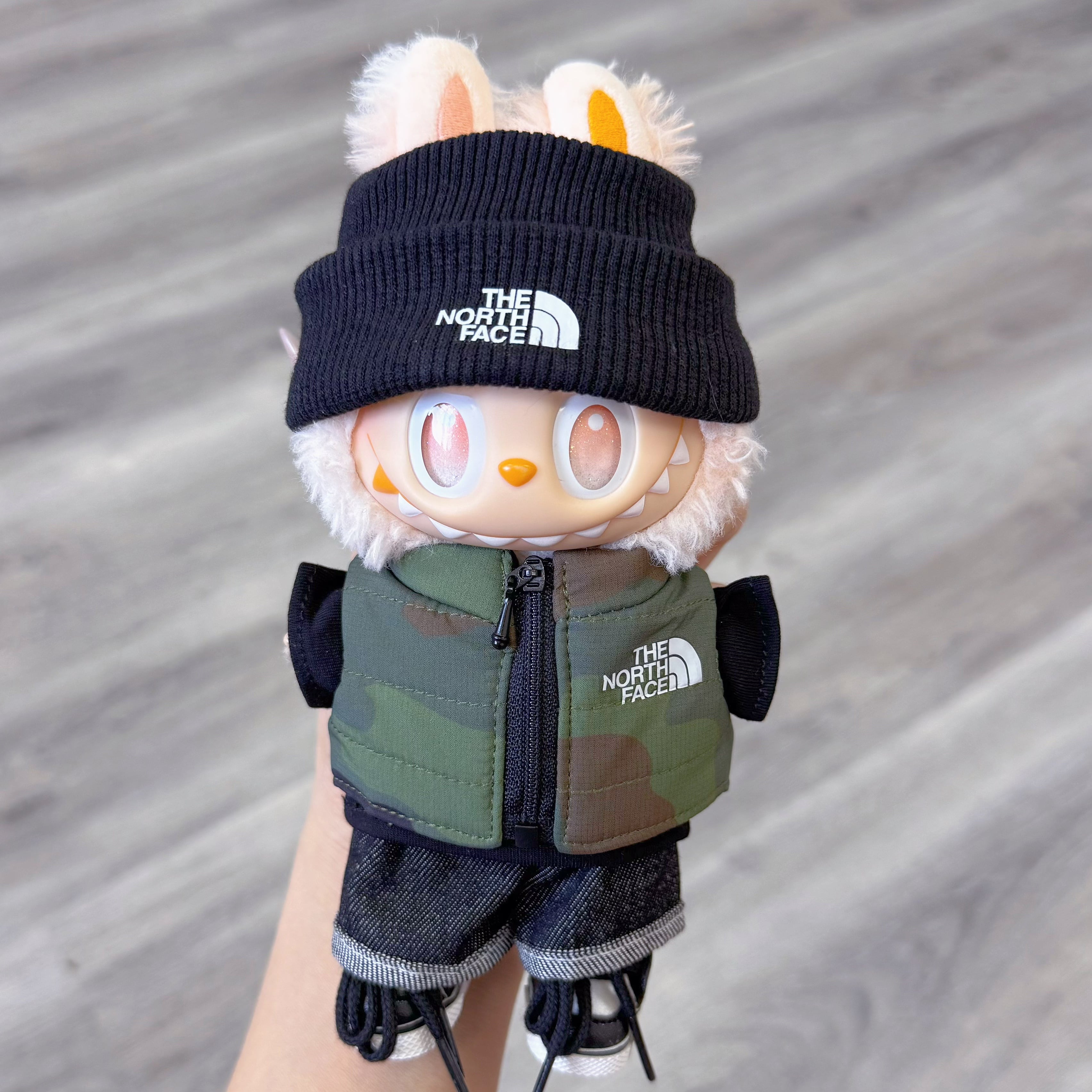アウトドア・スポーツ風!シューズ付き♡ Labubu クールおしゃれコーデ 15-17cm着用|洗練されたカジュアルスタイル ラブブ the monsters