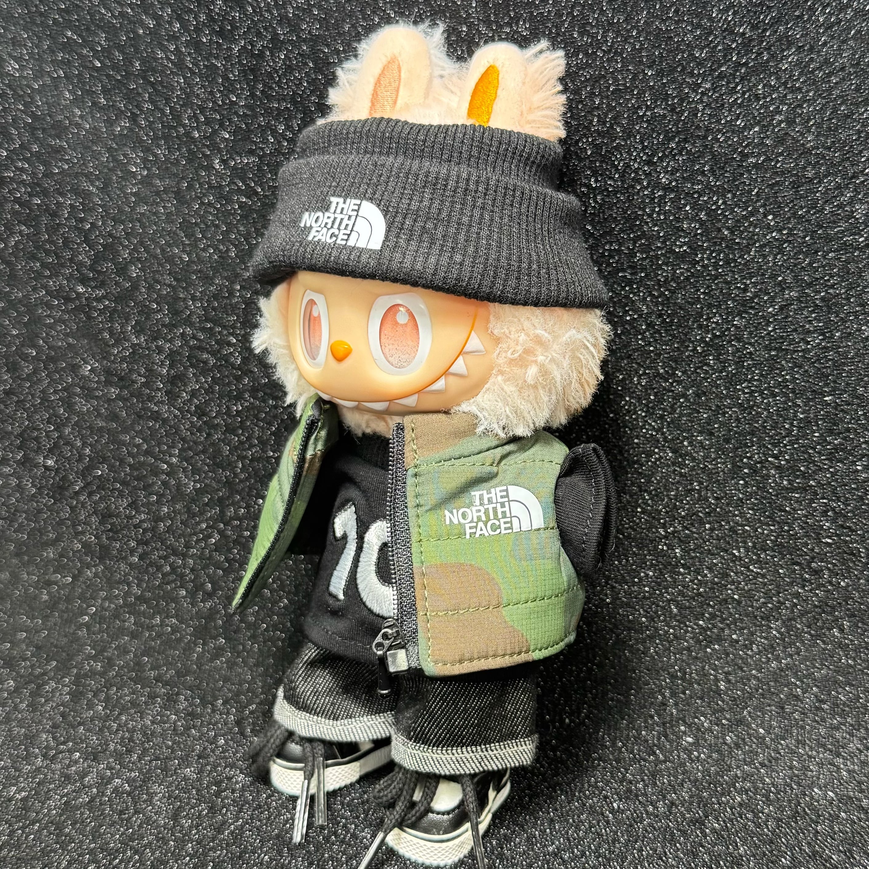 【商品名】アウトドア・スポーツ風!シューズ付き♡ Labubu クールおしゃれコーデ 15-17cm着用|洗練されたカジュアルスタイル ラブブ the monsters
