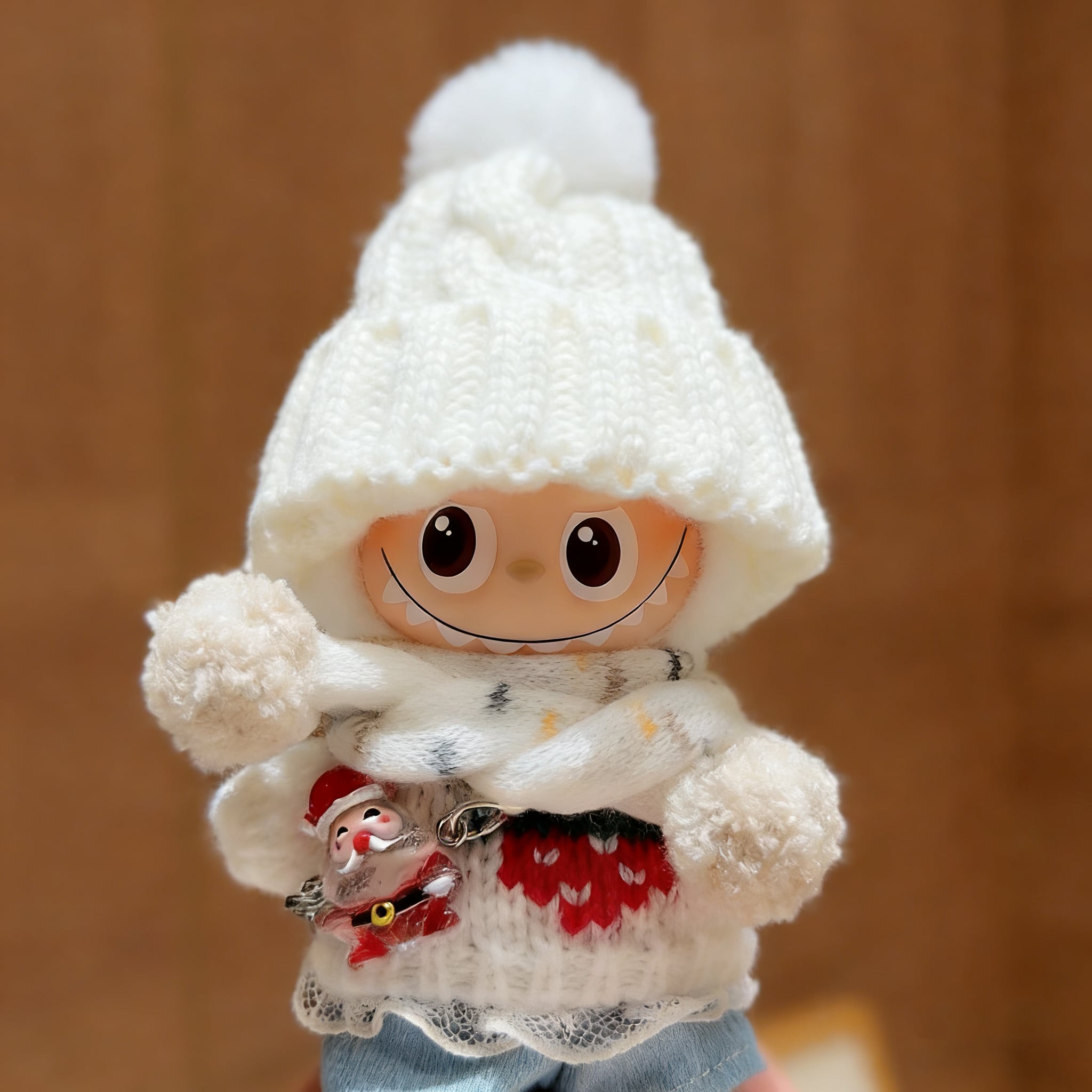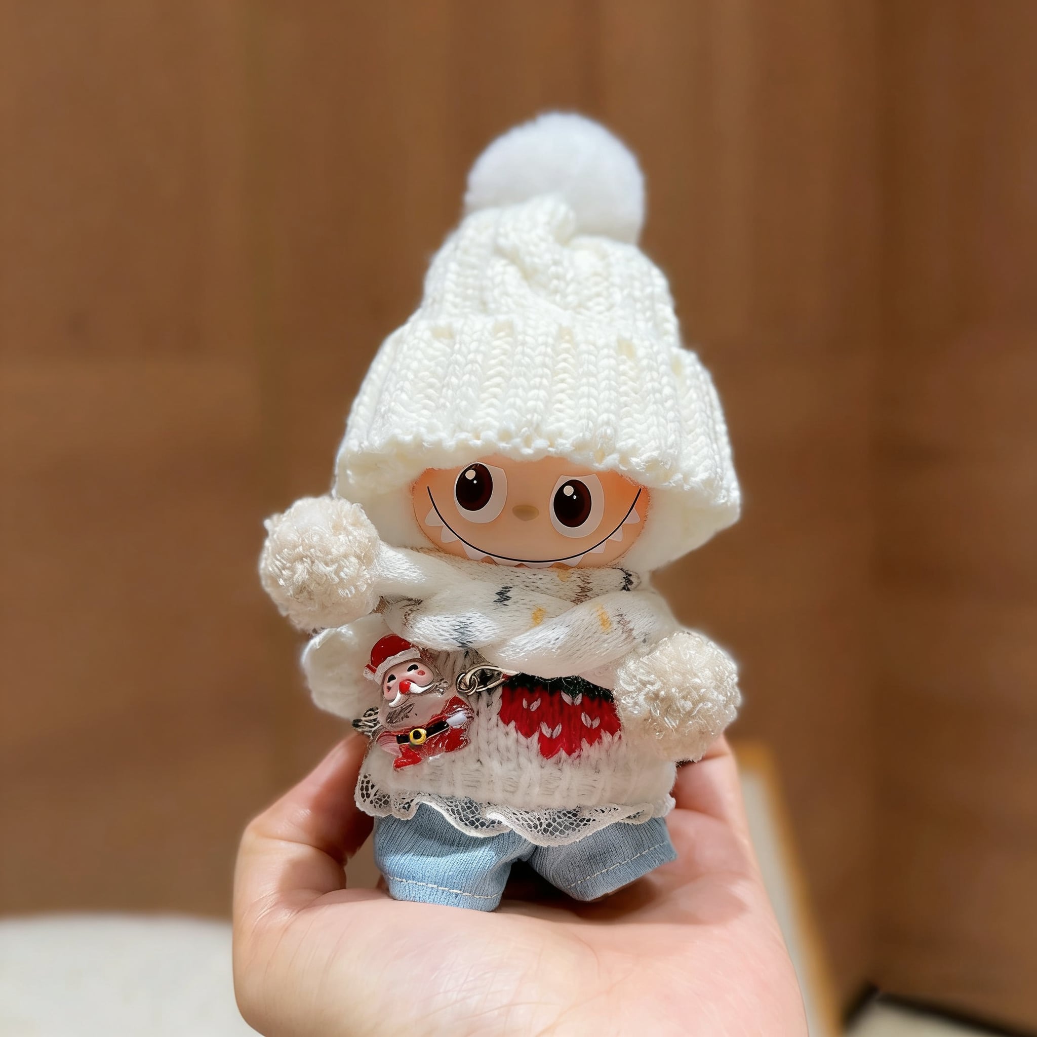 レースデザインで上品な雰囲気!ストロベリーモチーフが可愛い♡ Labubu 4.0 10cm 冬の純白コーデ 軽やかで可愛い 高品質