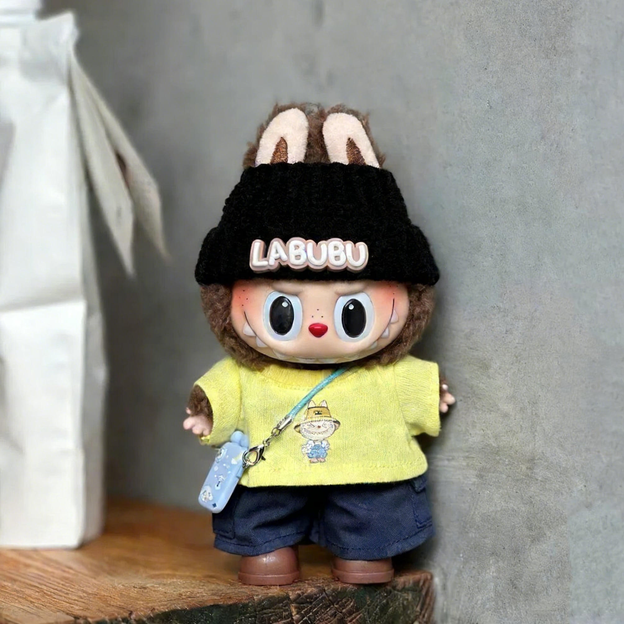 クール可愛い!カーゴパンツ&LabubuプリントTシャツ♡ 15-17cm ラブブ用 6点フルコーデ ストリートスタイル the monsters1.0 2.0 3.0