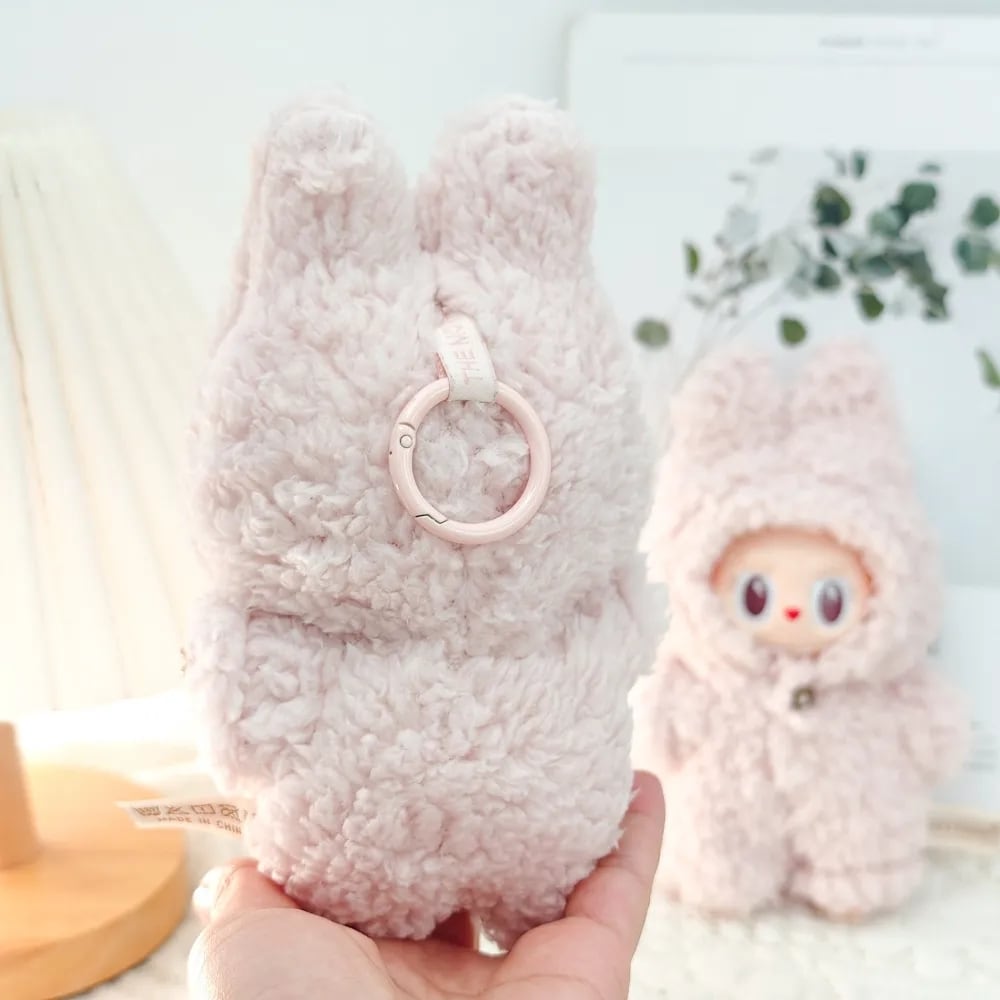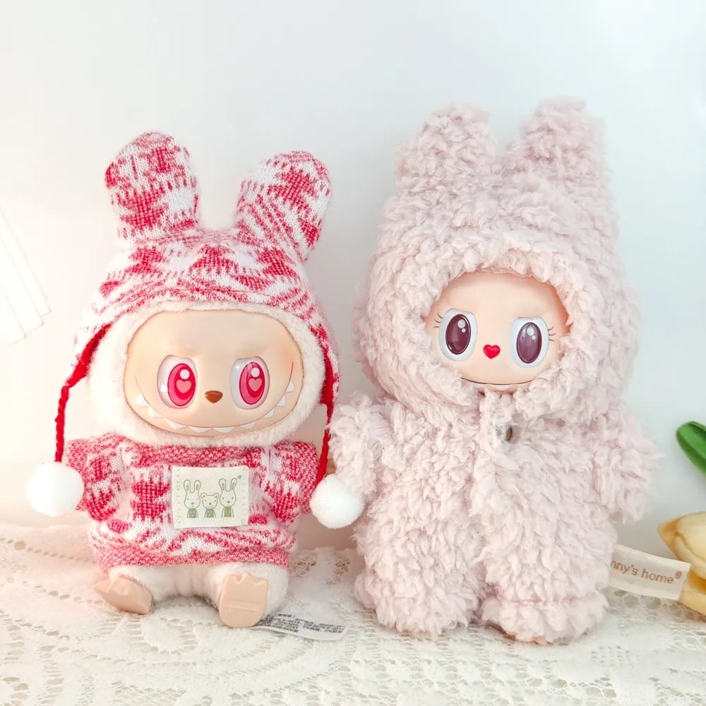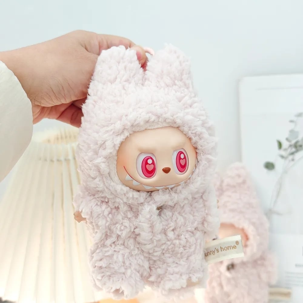 雲のように柔らかい!1・2世代対応 Labubu ラブブ ビニルドール 着せ替え ピンクウサ耳パジャマ フリース素材 ふわふわ もふもふ 15-17cm 超可愛い ふわふわ感触がたまらない