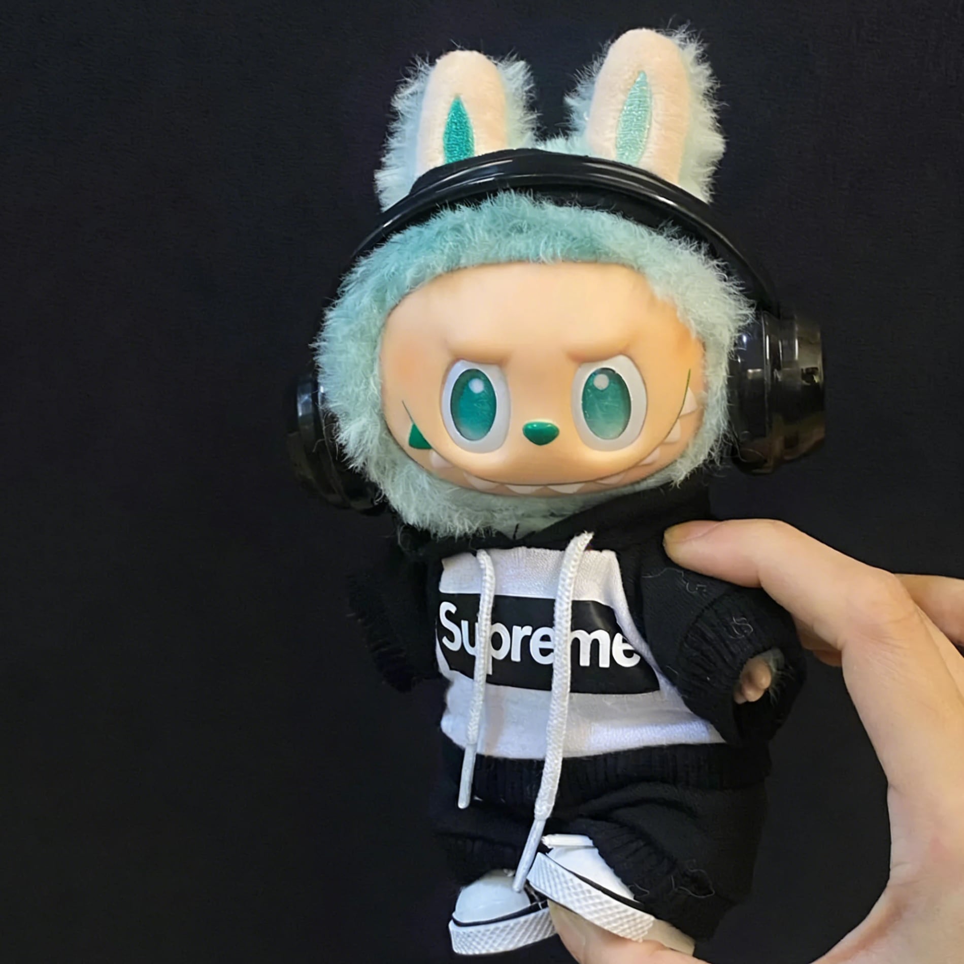 かっこいいラブブに♡ Labubu ラブブ クールなパーカーコーデ 4点フルセット 15-17cm 着せ替え シンプルでスタイリッシュ おしゃれ 可愛い 着回し抜群