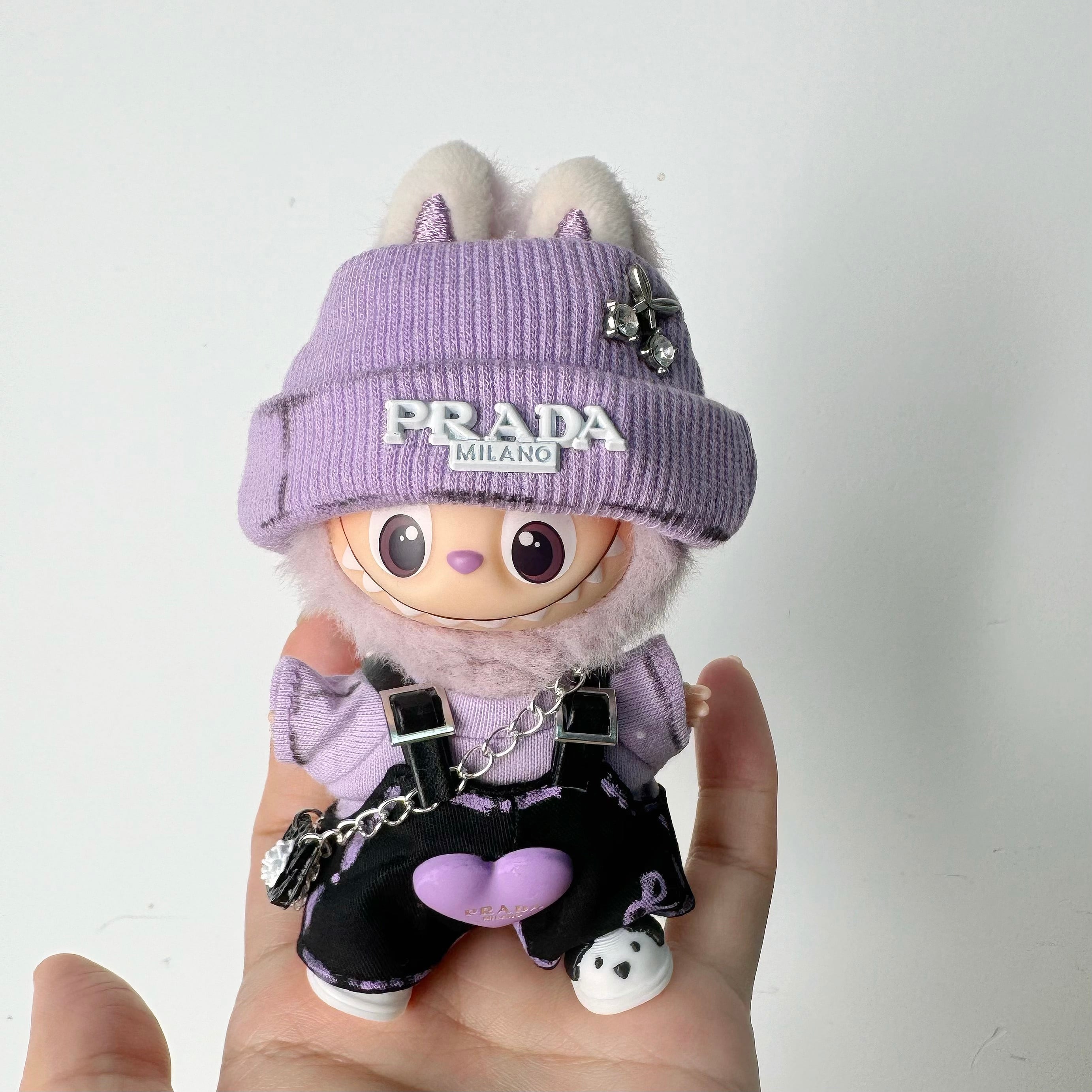 上品な紫!Labubu ラブブ 4.0 用 プレミアム パープル コーデ 衣装セット 可愛いハート 10cmドール用 フルコーデ おしゃれ 萌え