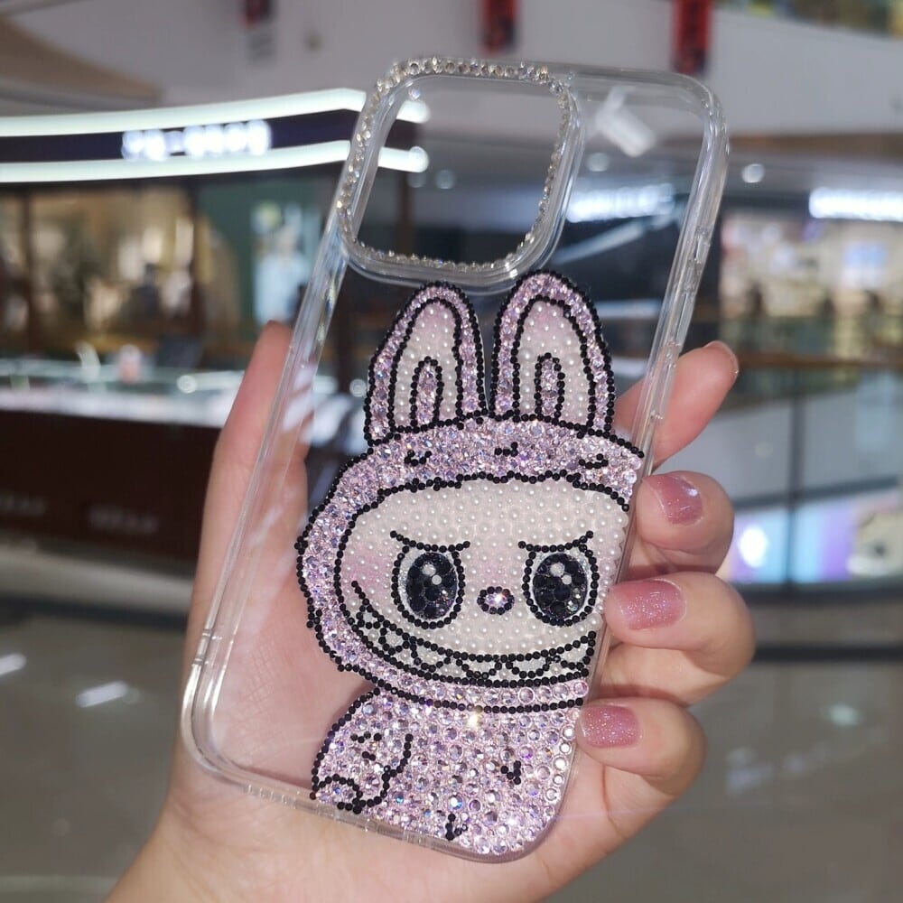 ピンクダイヤモンド 可愛い✨激萌え labubu ラブブ ピンクデコケース iPhone 17 Pro Max 対応 キラキラ光る 甘くて可愛い ダイヤモンド 全包み 耐衝撃 透明カバー