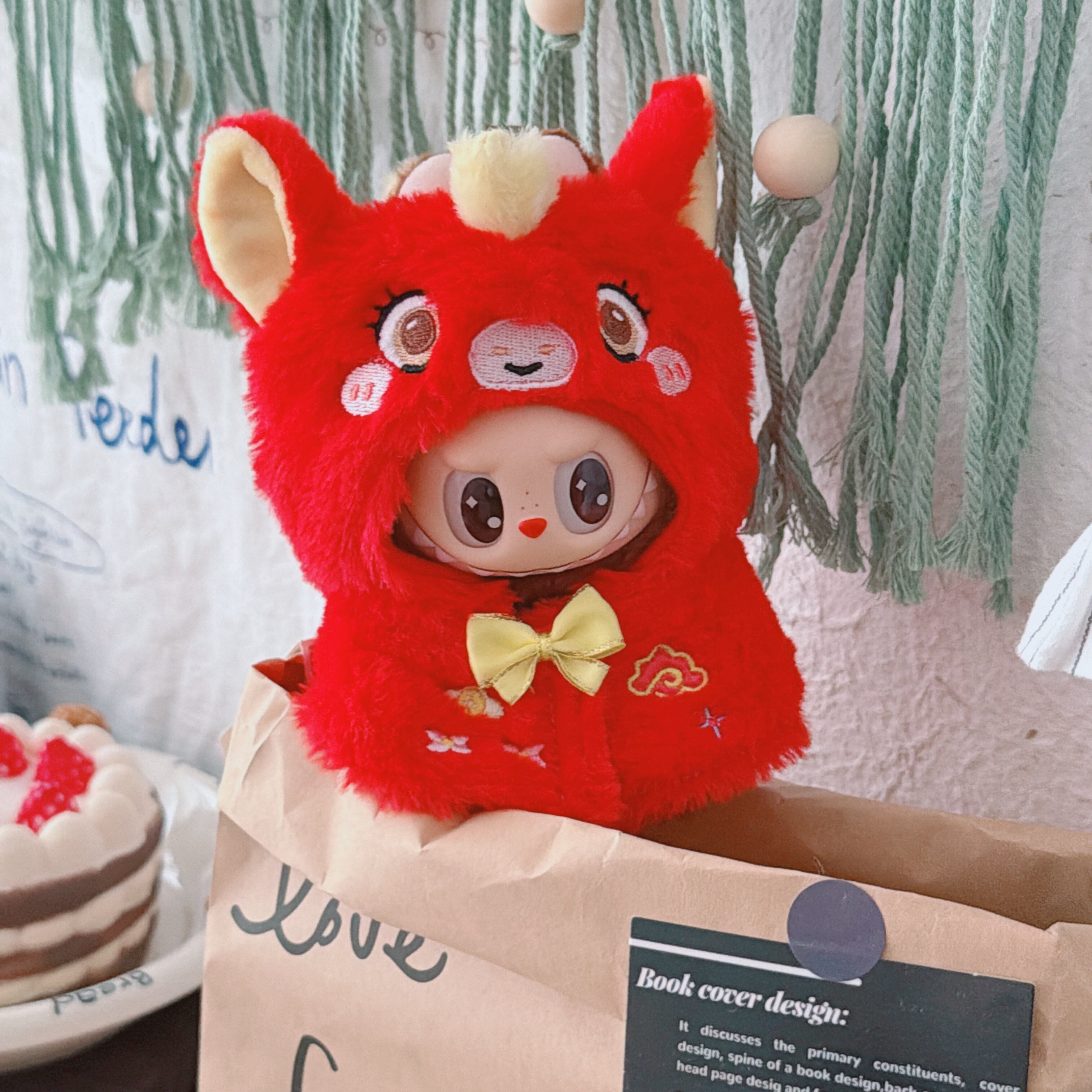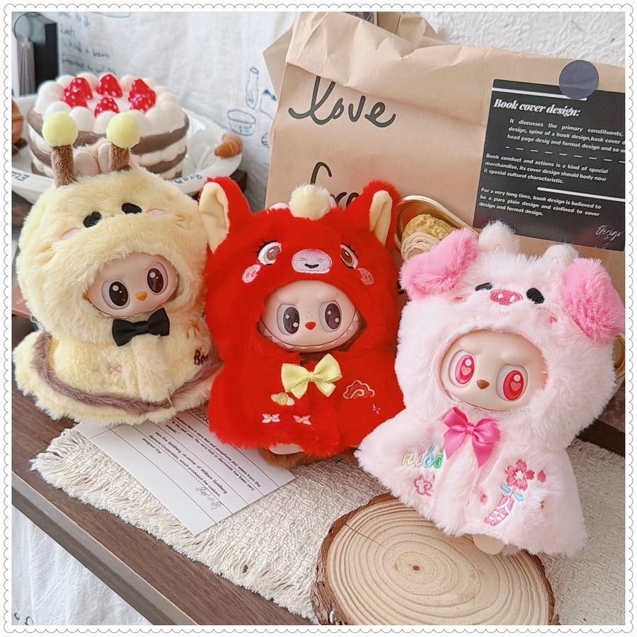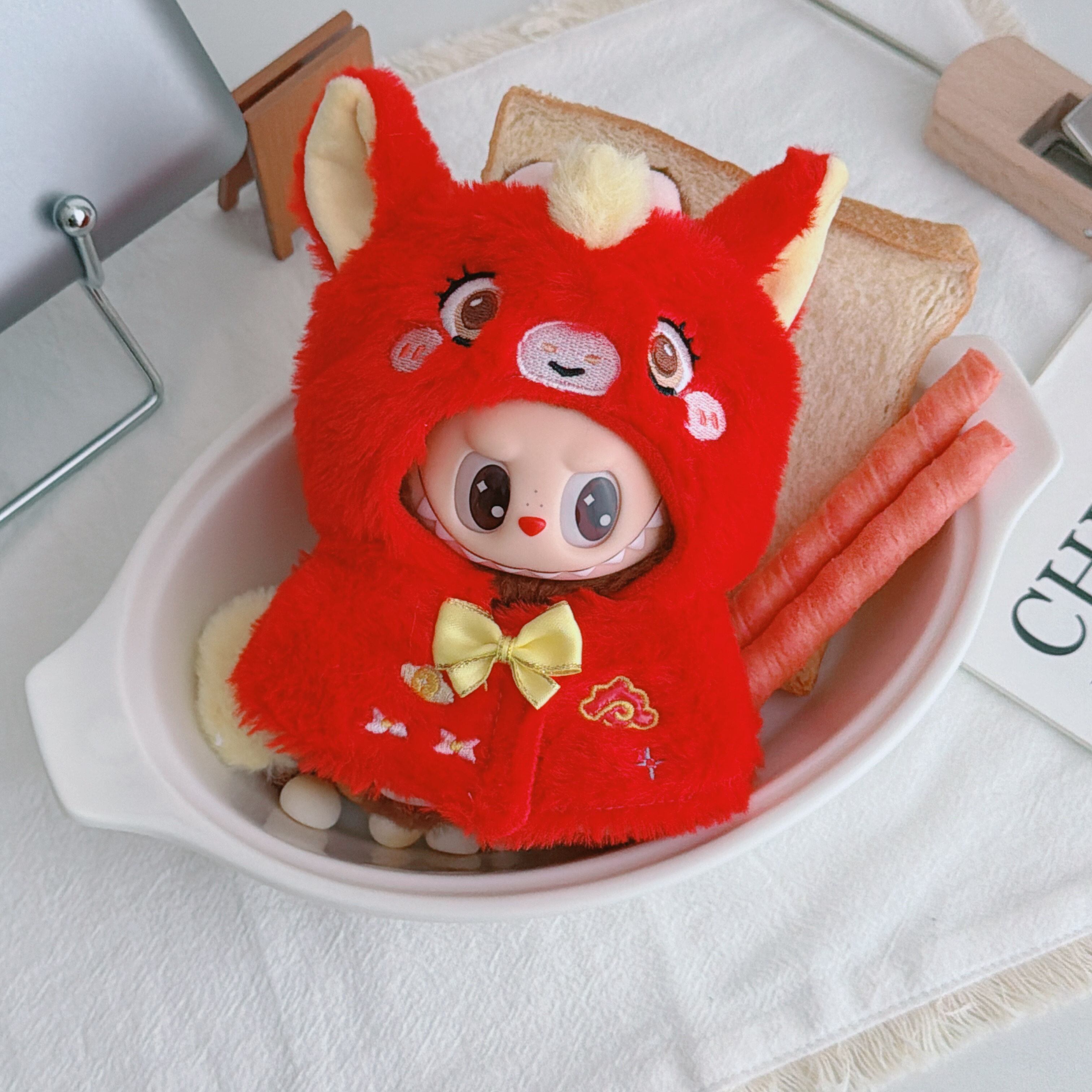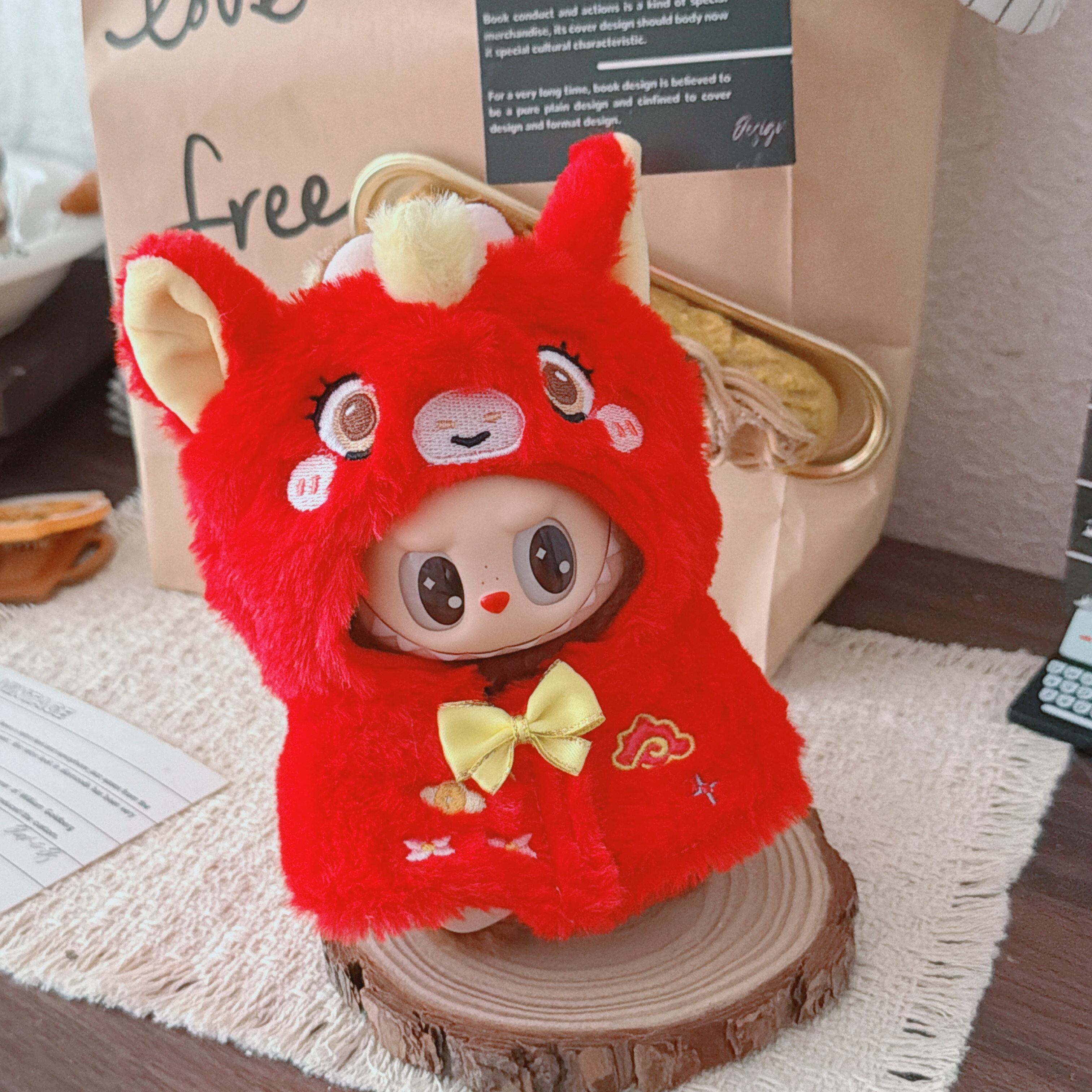 かわいい刺繍入り!激カワ 萌え萌え♡ 15-17cm Labubu ラブブ ケープマント ドール衣装 ほこりよけ the monsters 1/2/3世代対応 高品質